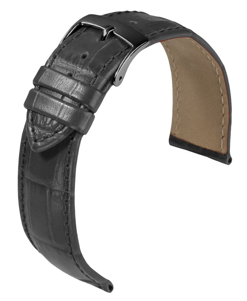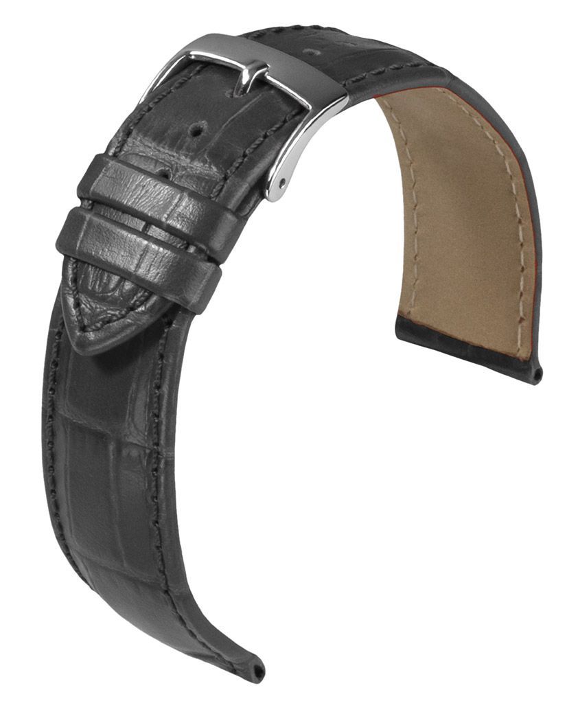 Barington Kroko-Print Uhrenarmband Leder Krokoprägung grau rembordiert