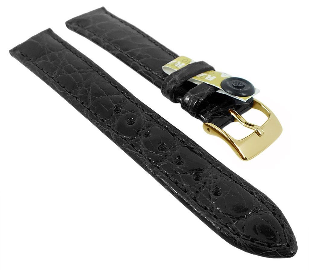 Barington KROKO Uhrenarmband | Krokodilleder, poliert | schwarz 35449H