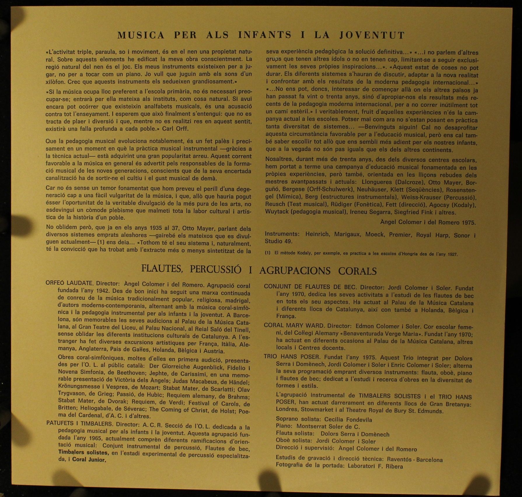 Condition Vinyl Near Mint (NM or M-) Condition Sleeve Near Mint (NM or M-) Tracks included: I 1. Troika 2. Little Schottische 3. Tardor 4. El Cavaller Enamorat 5. Variations On The Bells Of Westminster 6. Hol.Di.Ri.Di II 1. Obertura De Nadal 2. Kling Glöckchen, Kling 3. Benedicamus Domino 4. El Cant