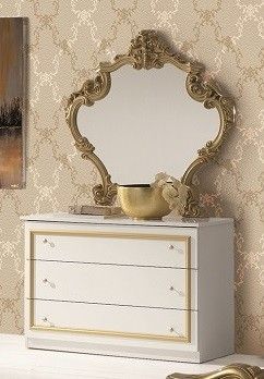 Barocco Kommode mit Spiegel in Weiß / Gold