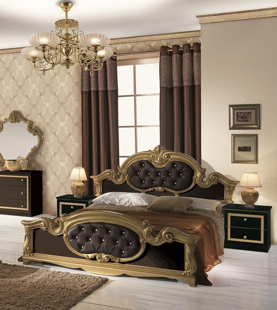 Barock Doppelbett Barokko in Schwarz/Gold