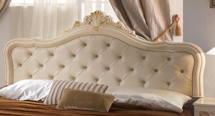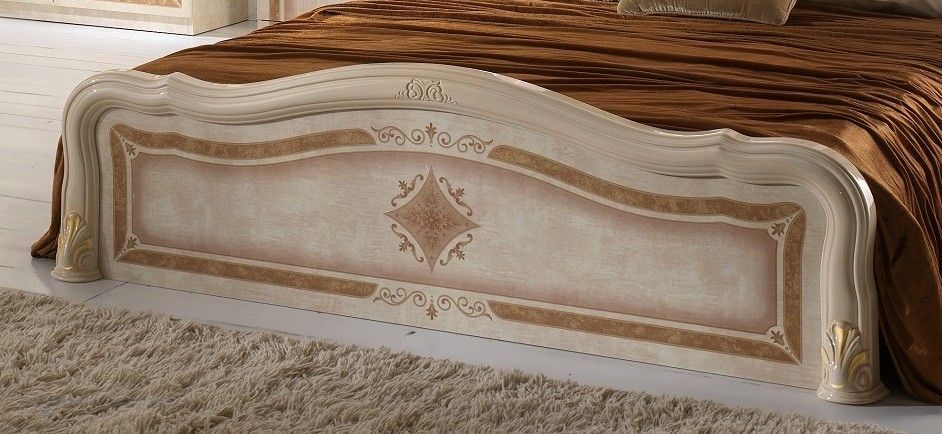 Elegante Schlafzimmermöbel im königlichen Stil. Elegante Luisa Schlafzimmermöbel mit edler glanz-Oberfläche in Beige Walnuss und vielen weiteren Details im klassischen Design 1x Doppelbett mit aufwändig gearbeiteten Polster im Kopfteil mit aufwändig gearbeiteten Kopfteil- und Fußteil in Hochglanz Ko