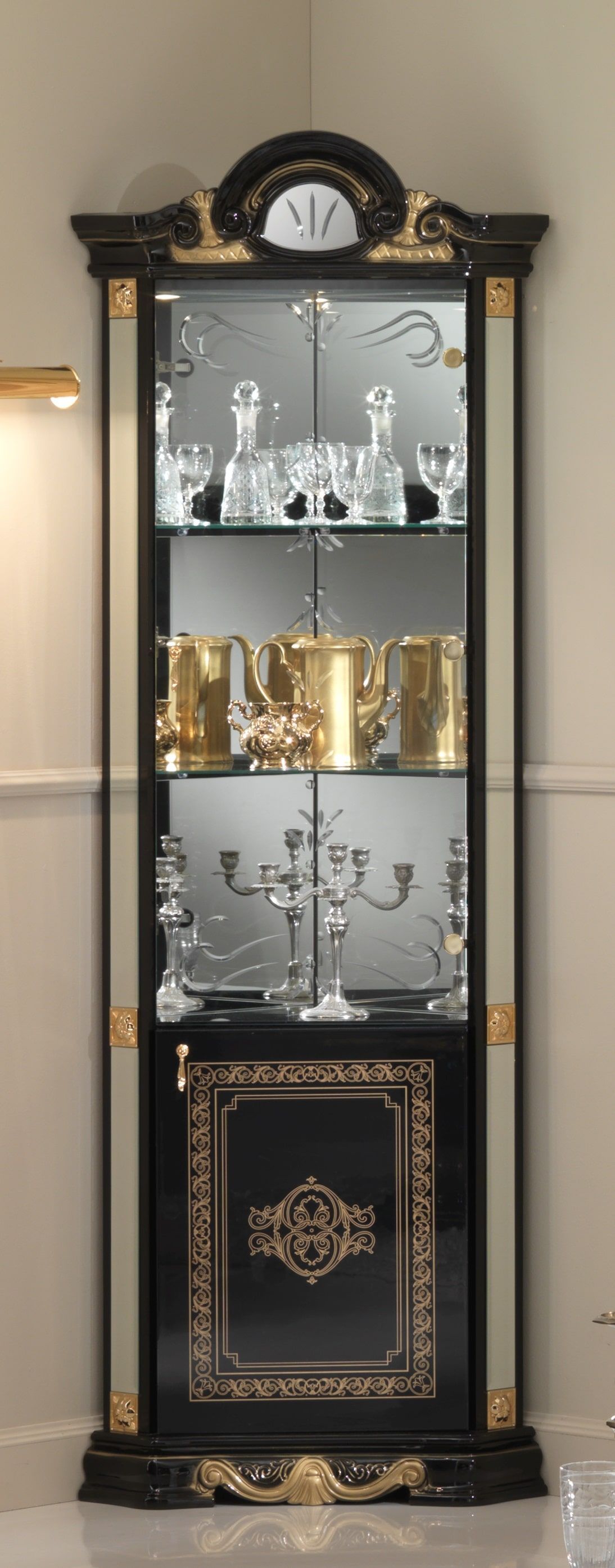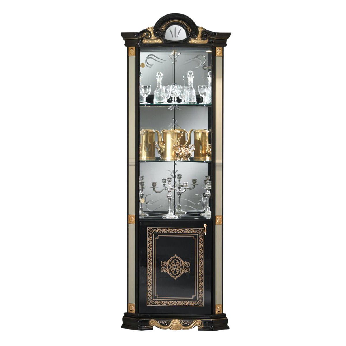 Barock Eckvitrine Bella in Schwarz/Gold Hochglanz