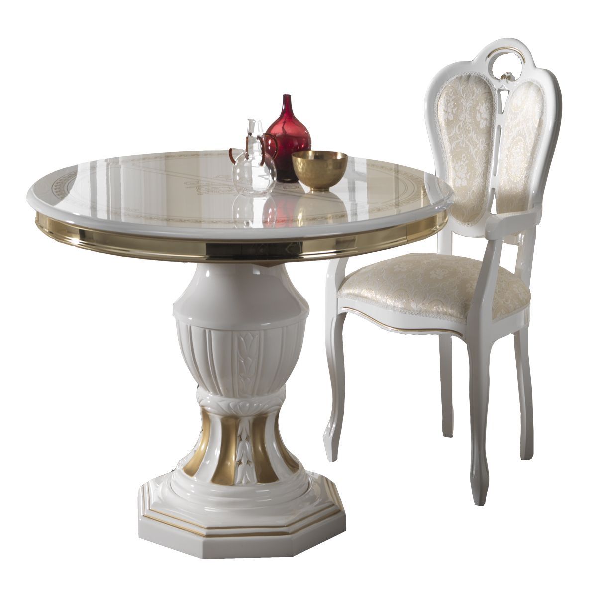 Barock Esstisch Bella in Weiß/Gold Rund Ausziehbar