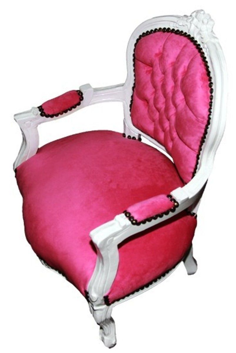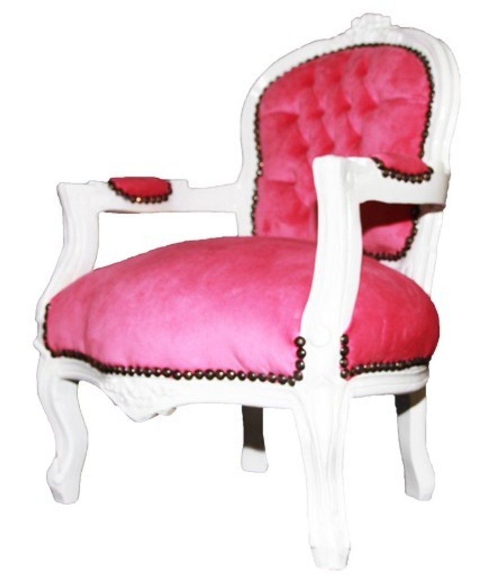 Barock Kinder Stuhl Rosa/Weiß - Armlehnstuhl