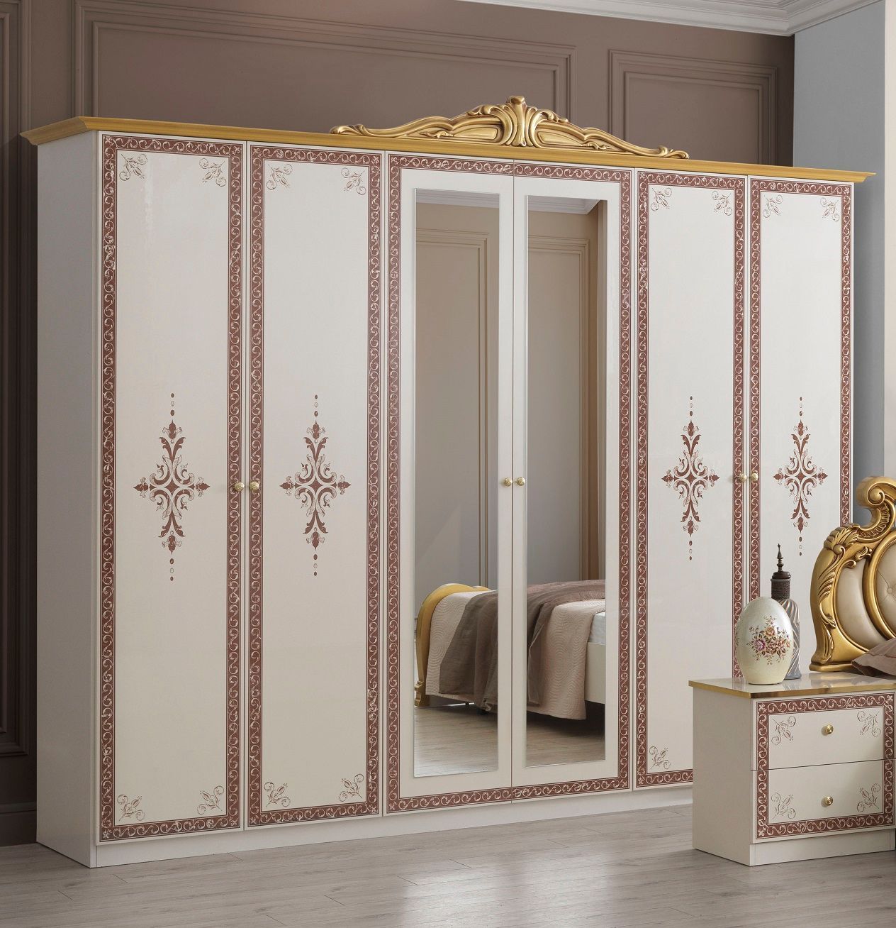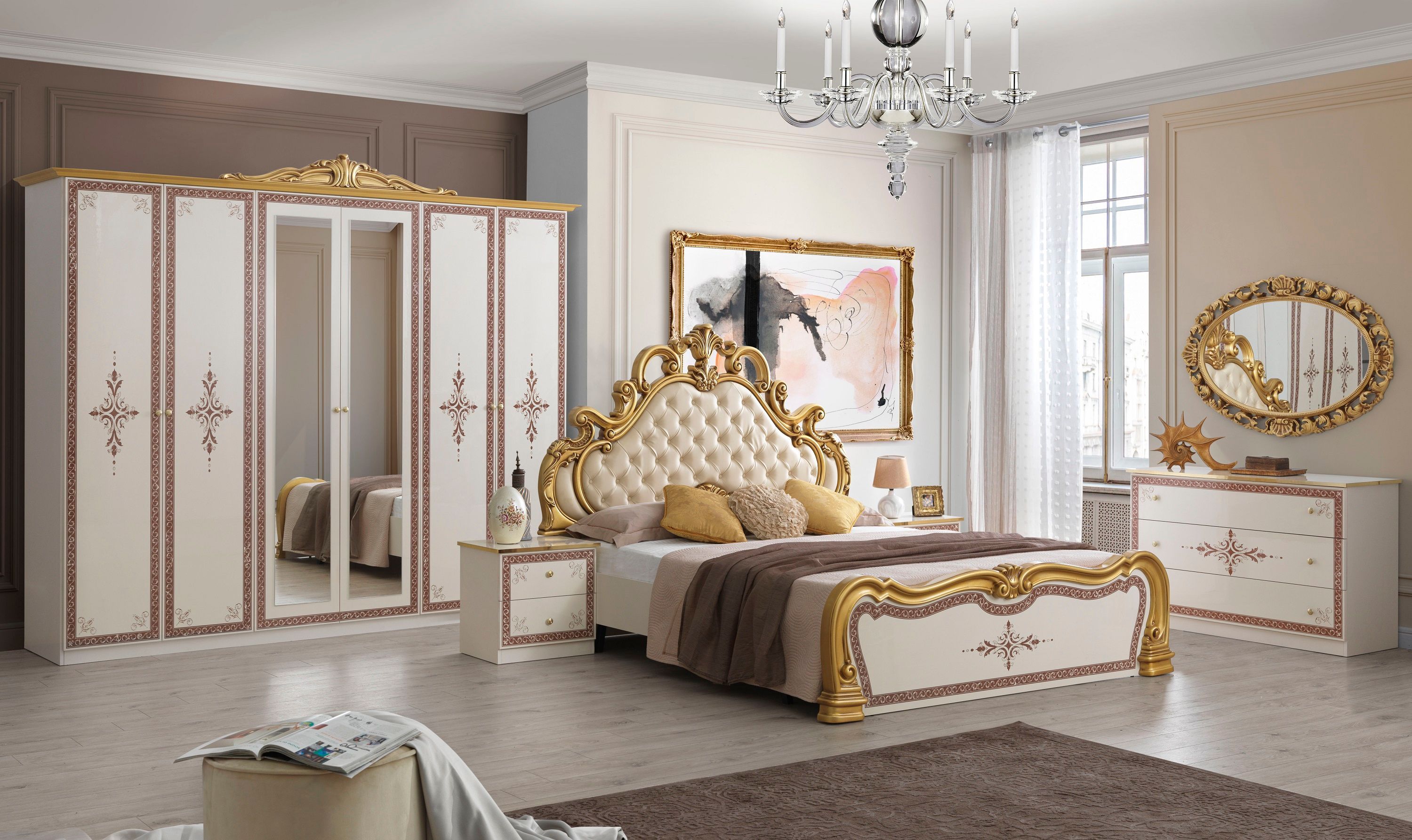 Barock Schlafzimmer Gloria in Beige/Gold 6-Teilig