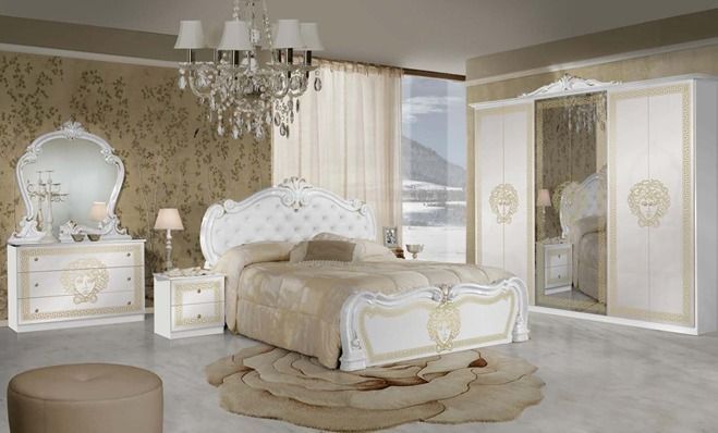 Barock Schlafzimmer Greta in Weiss/Gold 6-Teilig