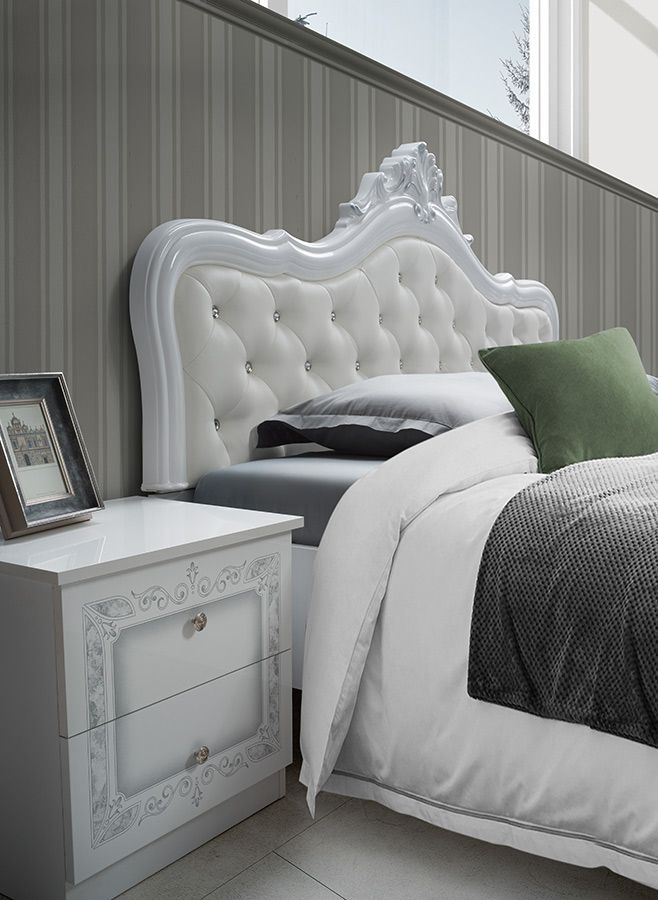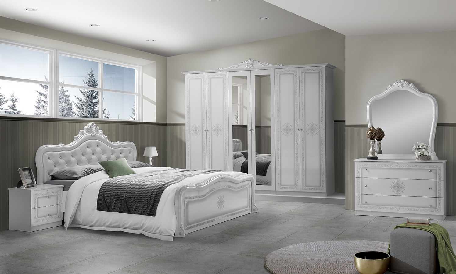 Barock Schlafzimmer Luisa Hochglanz in Weiß/Silber 6-teilig