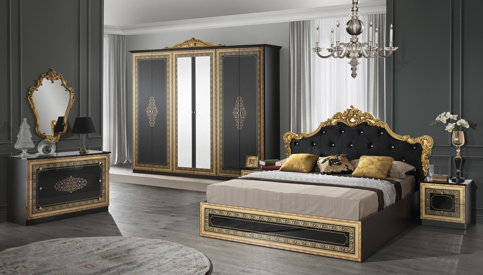 Barock Schlafzimmer-Set Anette in Schwarz/Gold