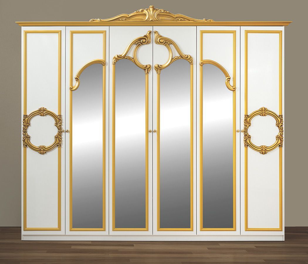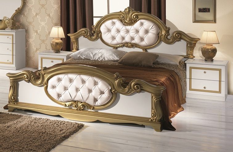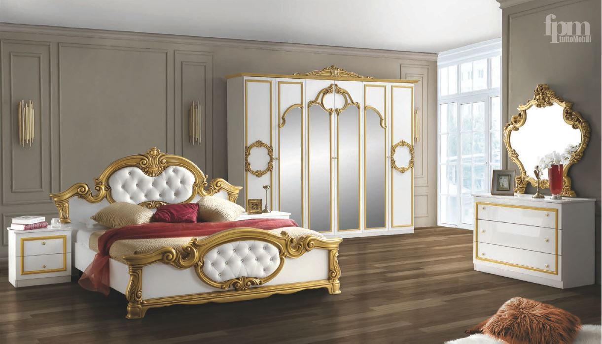 Barock Schlafzimmer-Set Barocco 6-teilig in Weiß/Gold