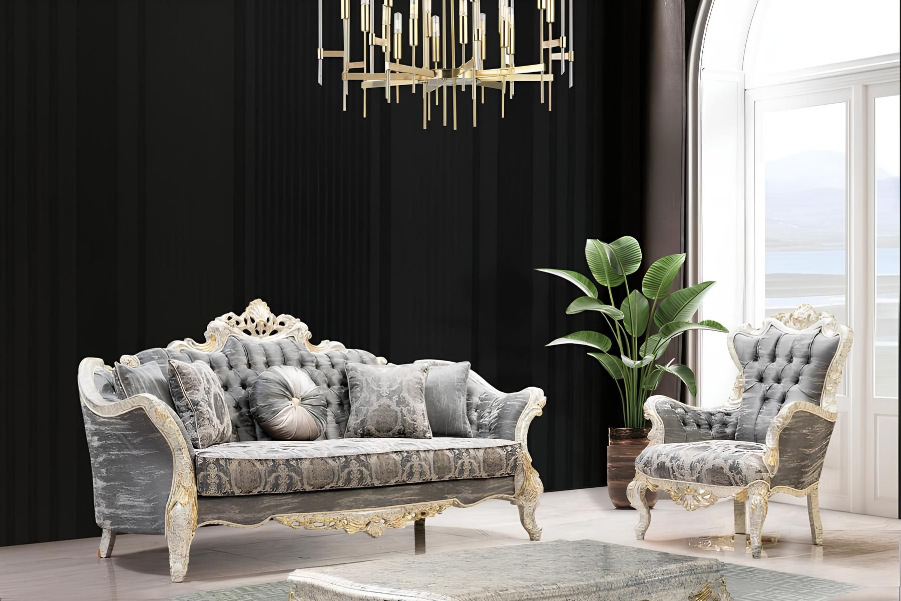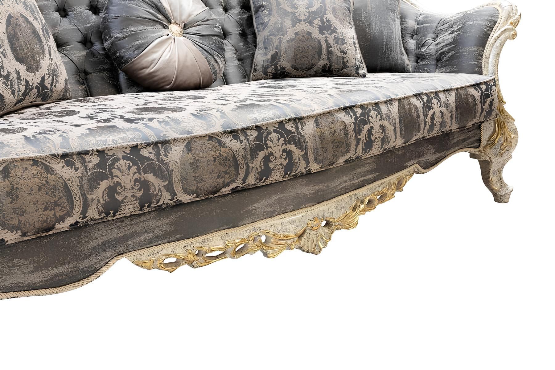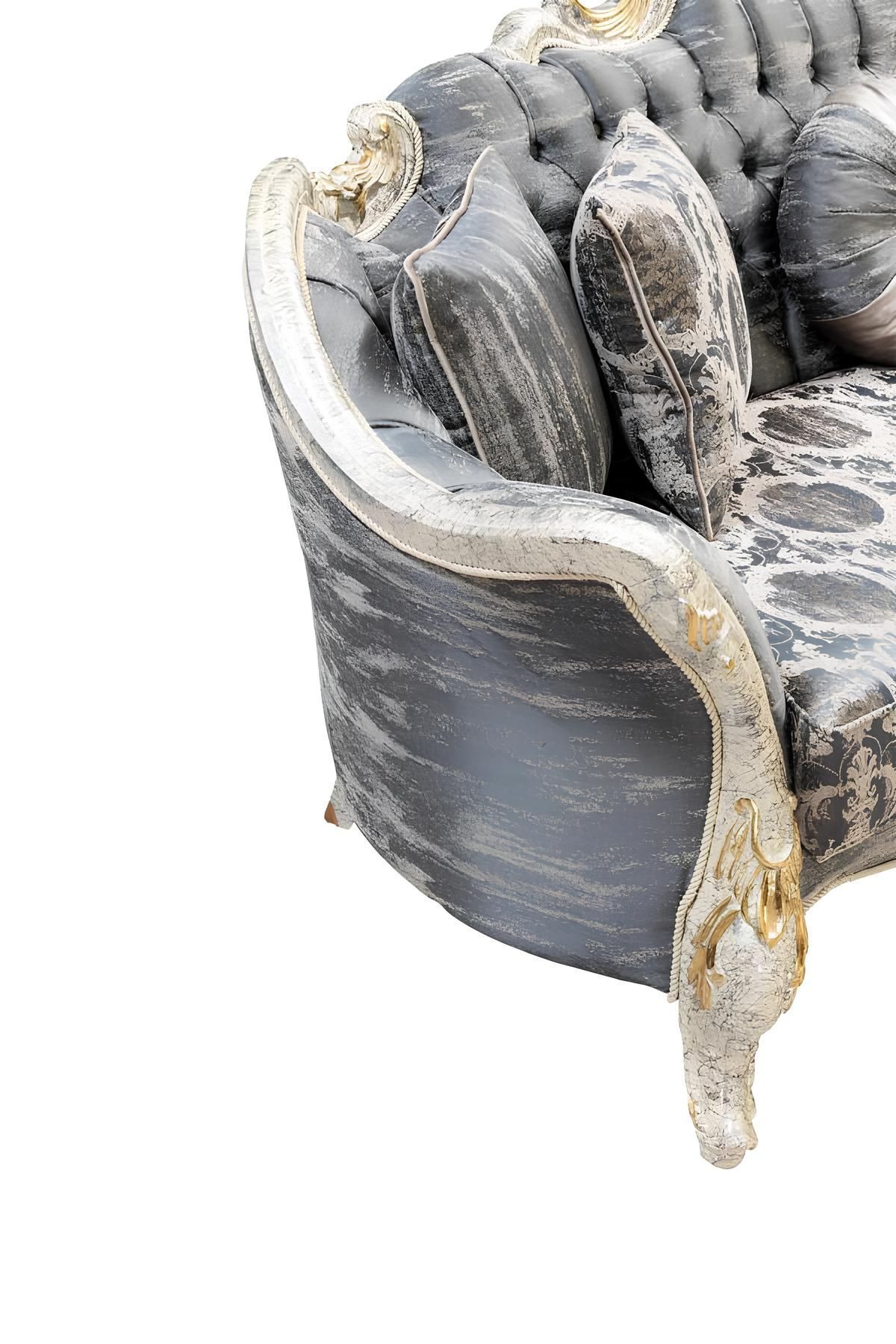 Barock Sofa 3 Sitz Grau Wohnzimmer Klassisch Design Sofa Couch Textil