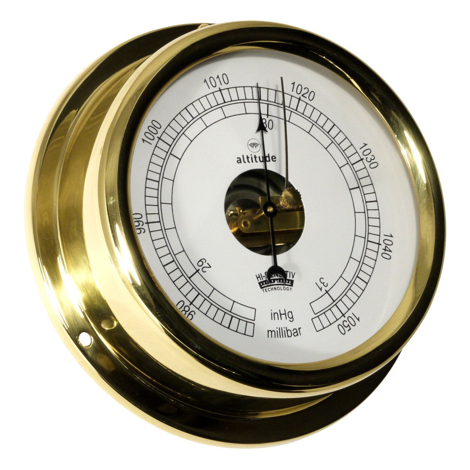 Barometer Altitude Messing poliert, weißes Zifferblatt, D 150 mm, Tiefe 42 mm