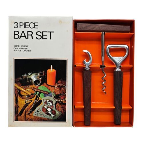 Barset 3Teilig Flaschenöffner Korkenzieher Dosenöffner 70er Geschenk Vintage Neu