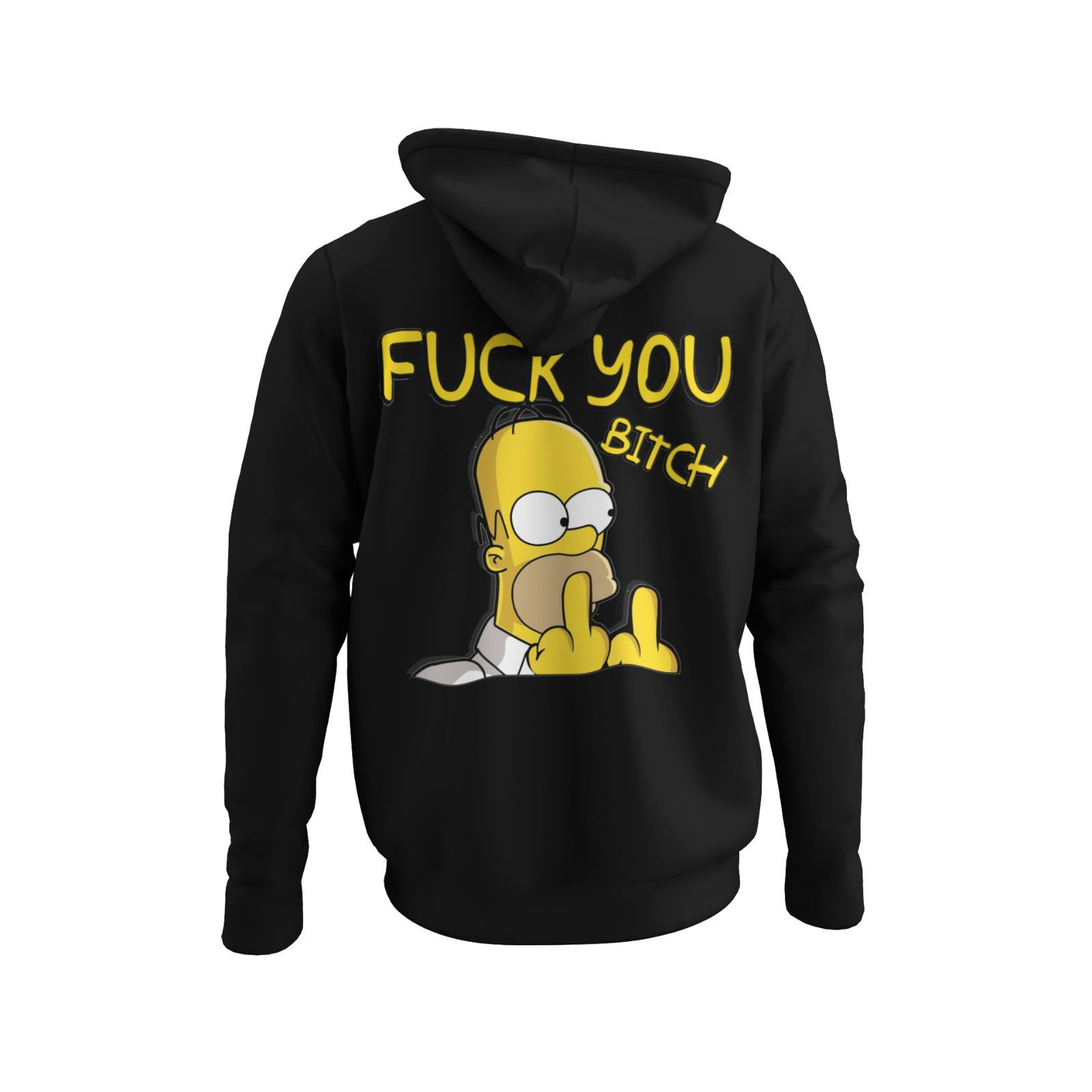 Bart Simpson Retro Parodie Damen Hoodie/Kapuzenpullover FUCK YOU Mittelfinger