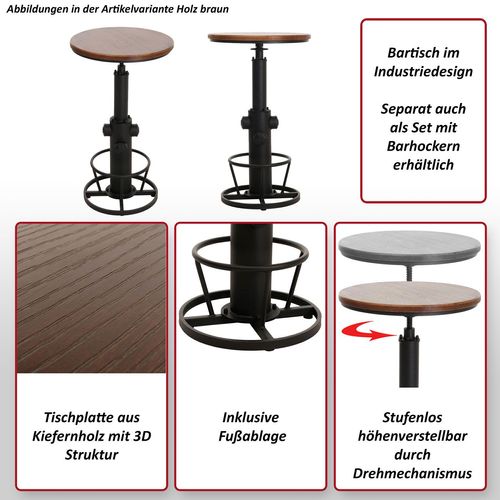 Mendler Bartisch HWC-N20, höhenverstellbar Fußablage Industrial Massiv-Holz Ø 61 cm
