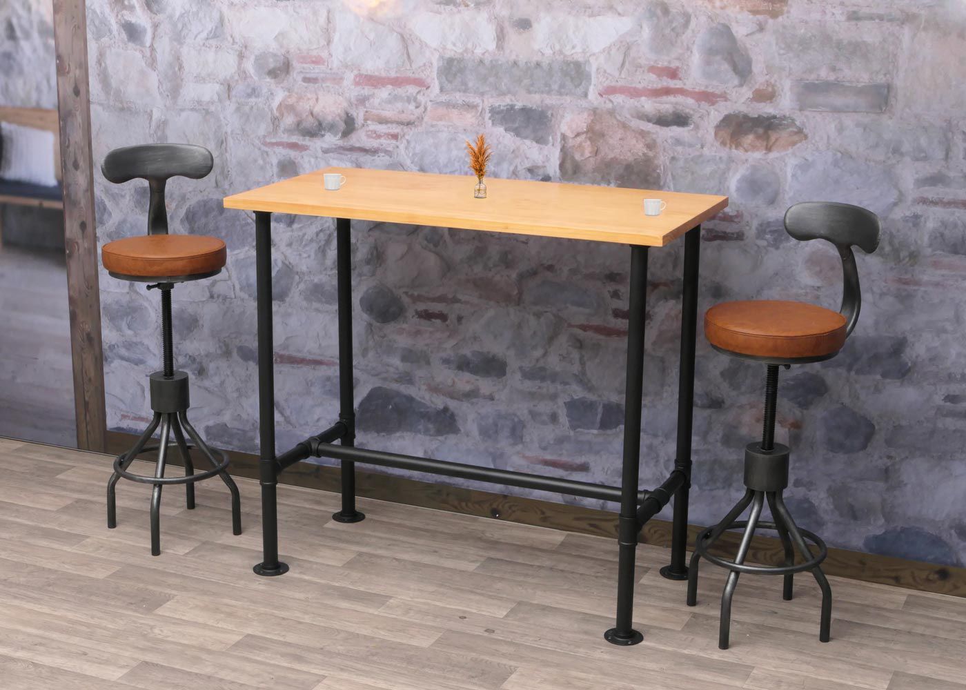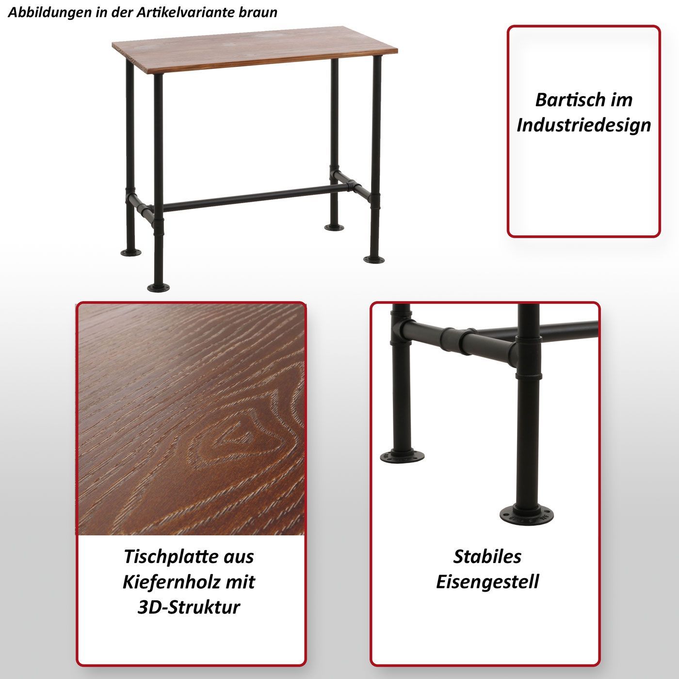 Mendler Bartisch HWC-N21, Bistrotisch, Fußablage Industrial Metall Massiv-Holz 108x120x61cm