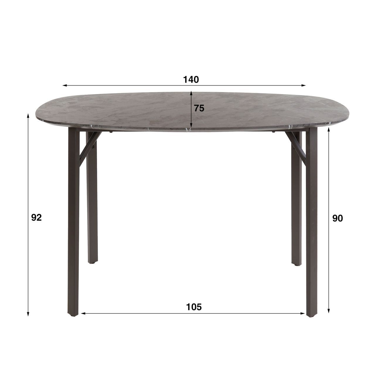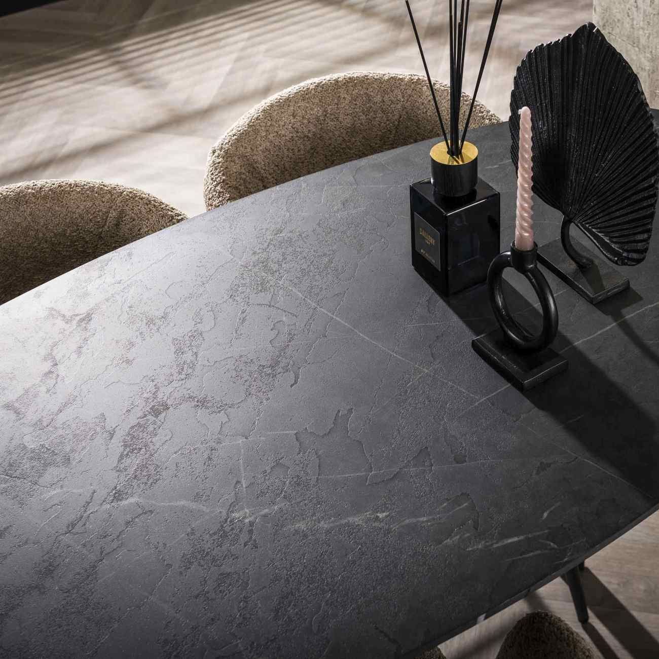 Bartisch Melamik, ovale Holzplatte mit schwarzer Keramikoptik, modern, 140 x 75