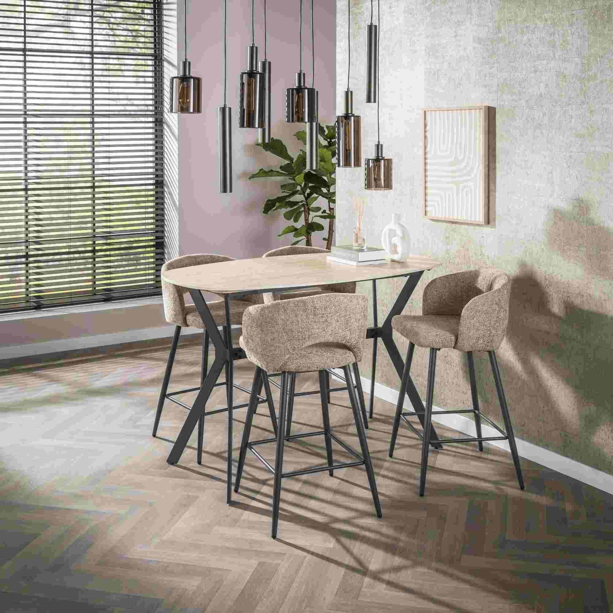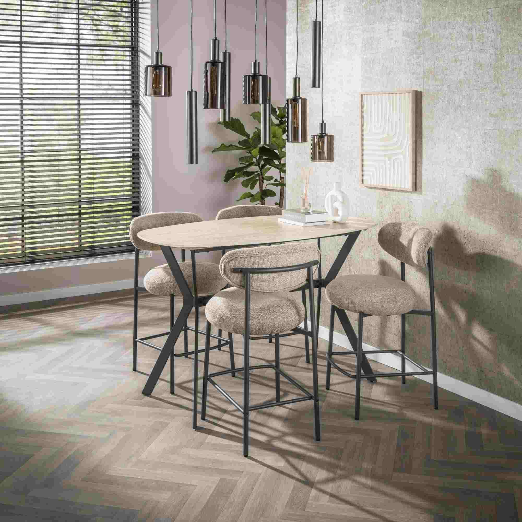 Bartisch Onam 140 cm mit ovaler Keramikplatte in Travertinoptik (Gr. 140x75x91 cm)