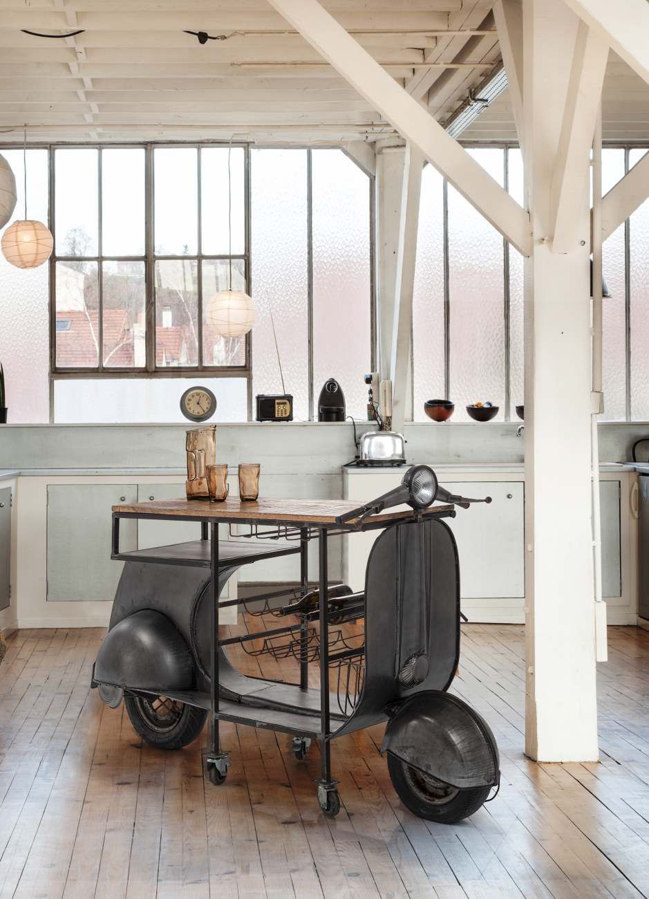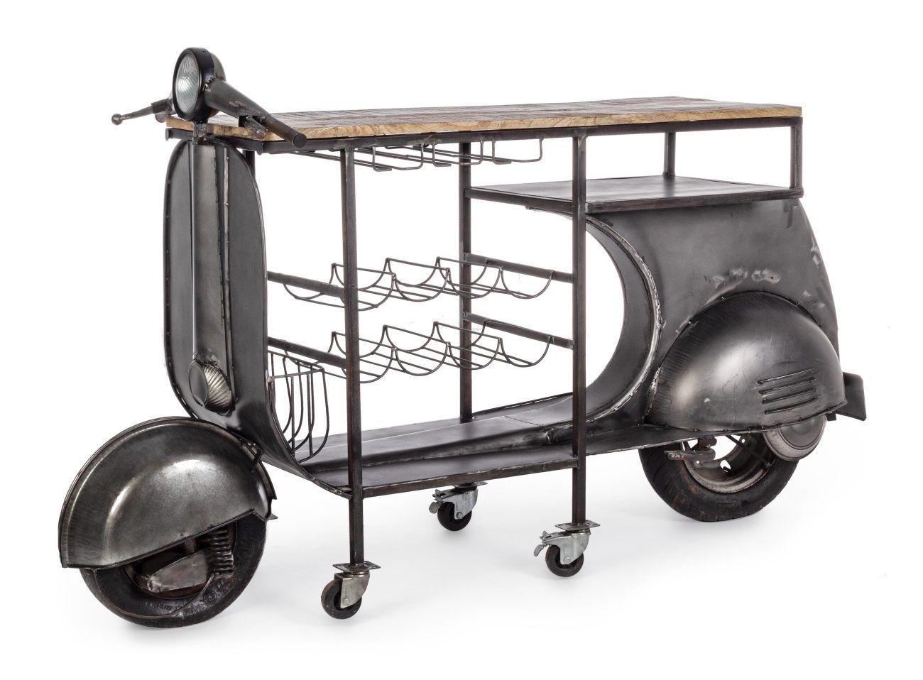 Bartisch Vespa aus Metall und Mangoholz, Industrial Stil, natur und anthrazit,
