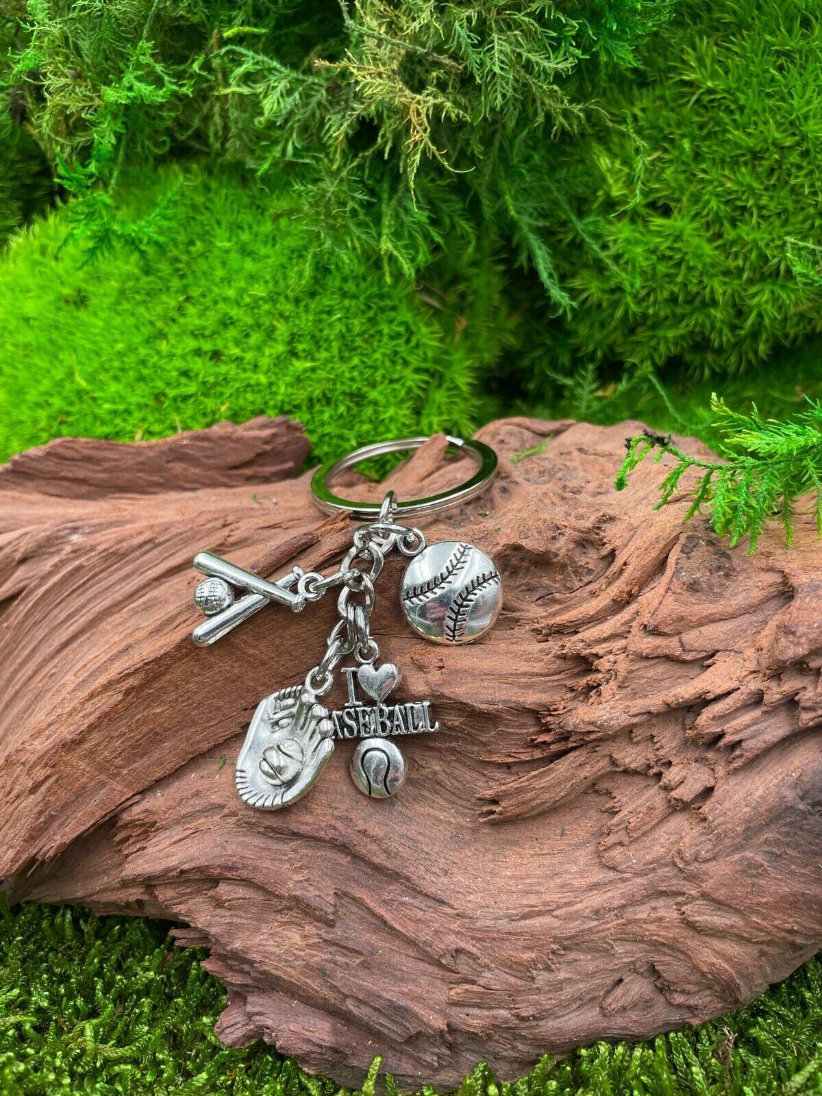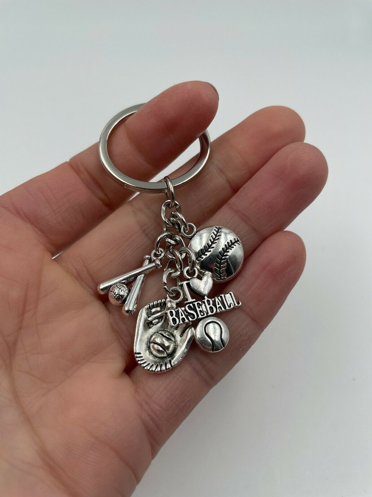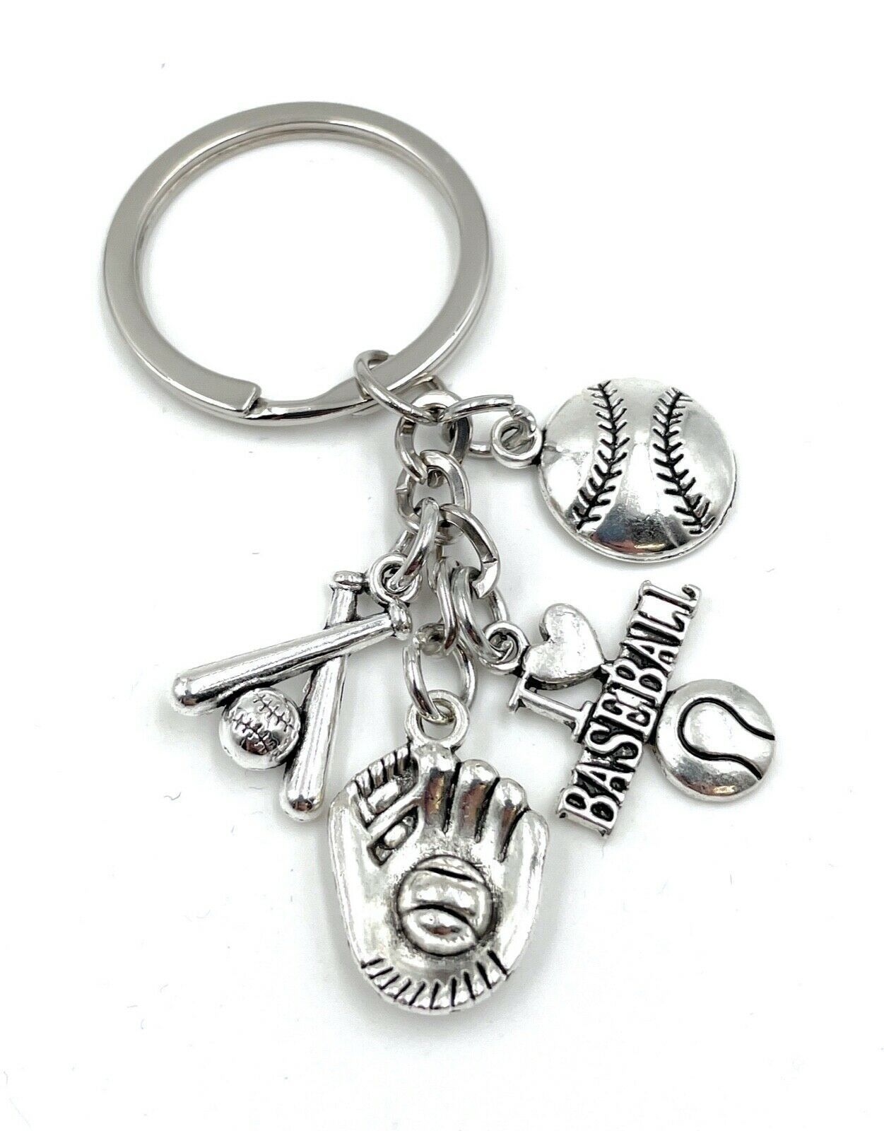 Baseball Schläger Ball Handschuh Schlüsselanhänger aus Metall Glücksbringer