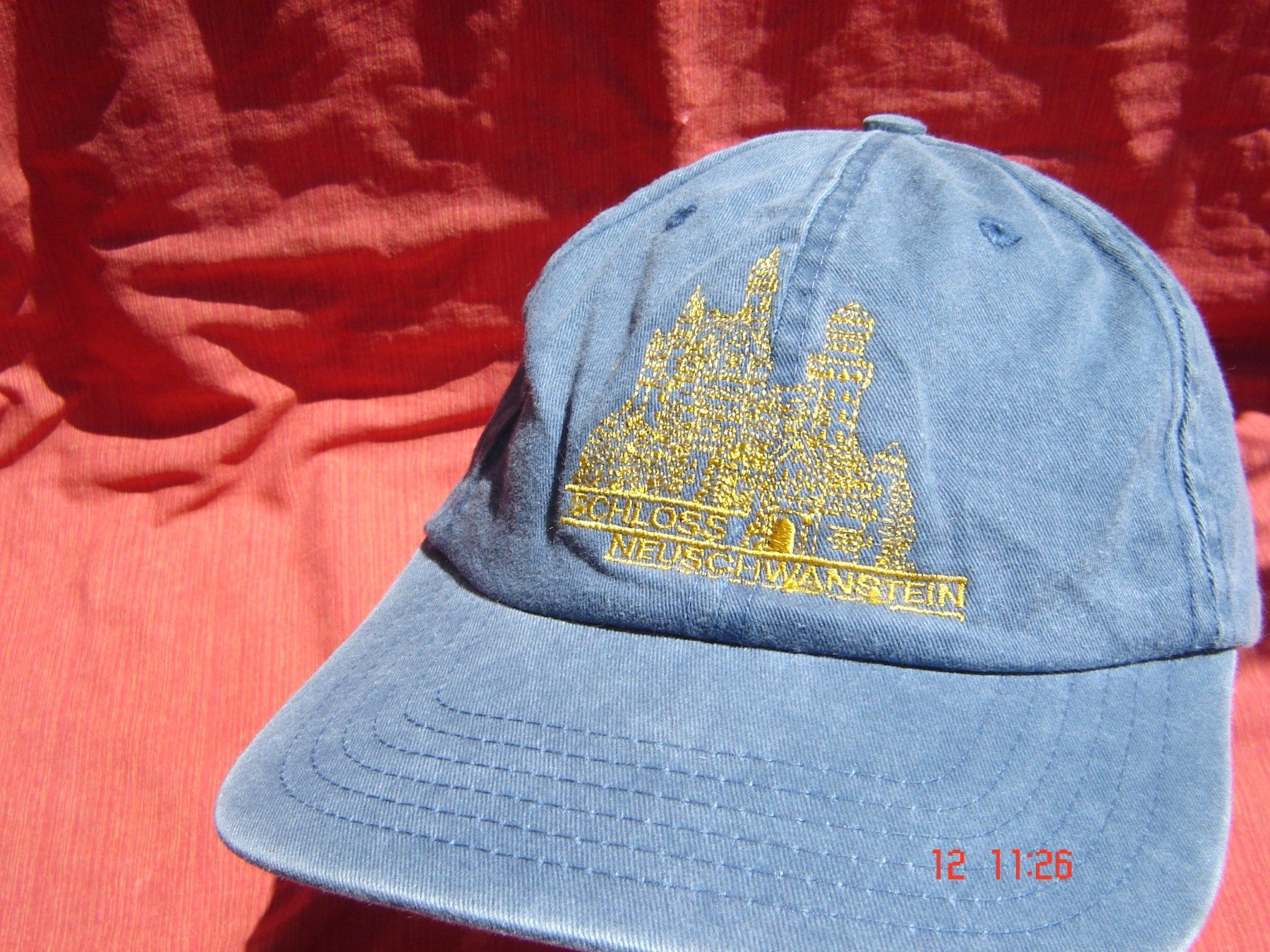 . Basecap Golfmütze , der Klassiker superschöne Basecap im 6 panel Schnitt aus 100% Baumwolle festes Material in Farbe jeans mit Stick vorne : Schloß Neuschwanstein und hinten Kinicap sehr schön verarbeitet mit wattiertem Baumwoll Innenband verstellbar für Größe von 56 bis 58 cm . Bitte sehen Sie si