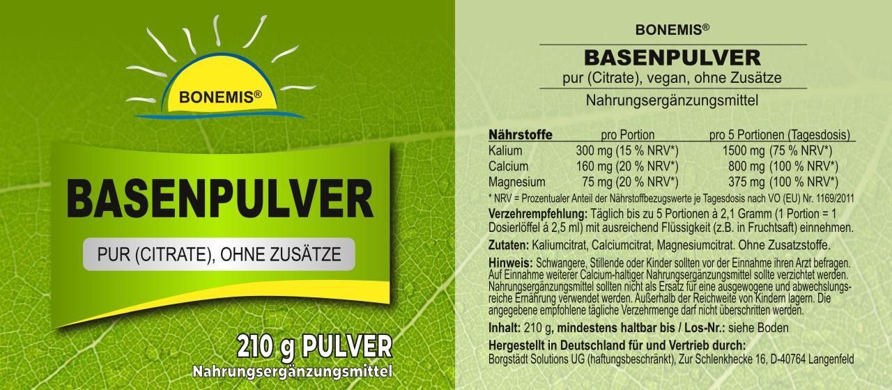 Basenpulver Premium, ohne Zusätze, 100 Portionen, vegan, Bonemis®