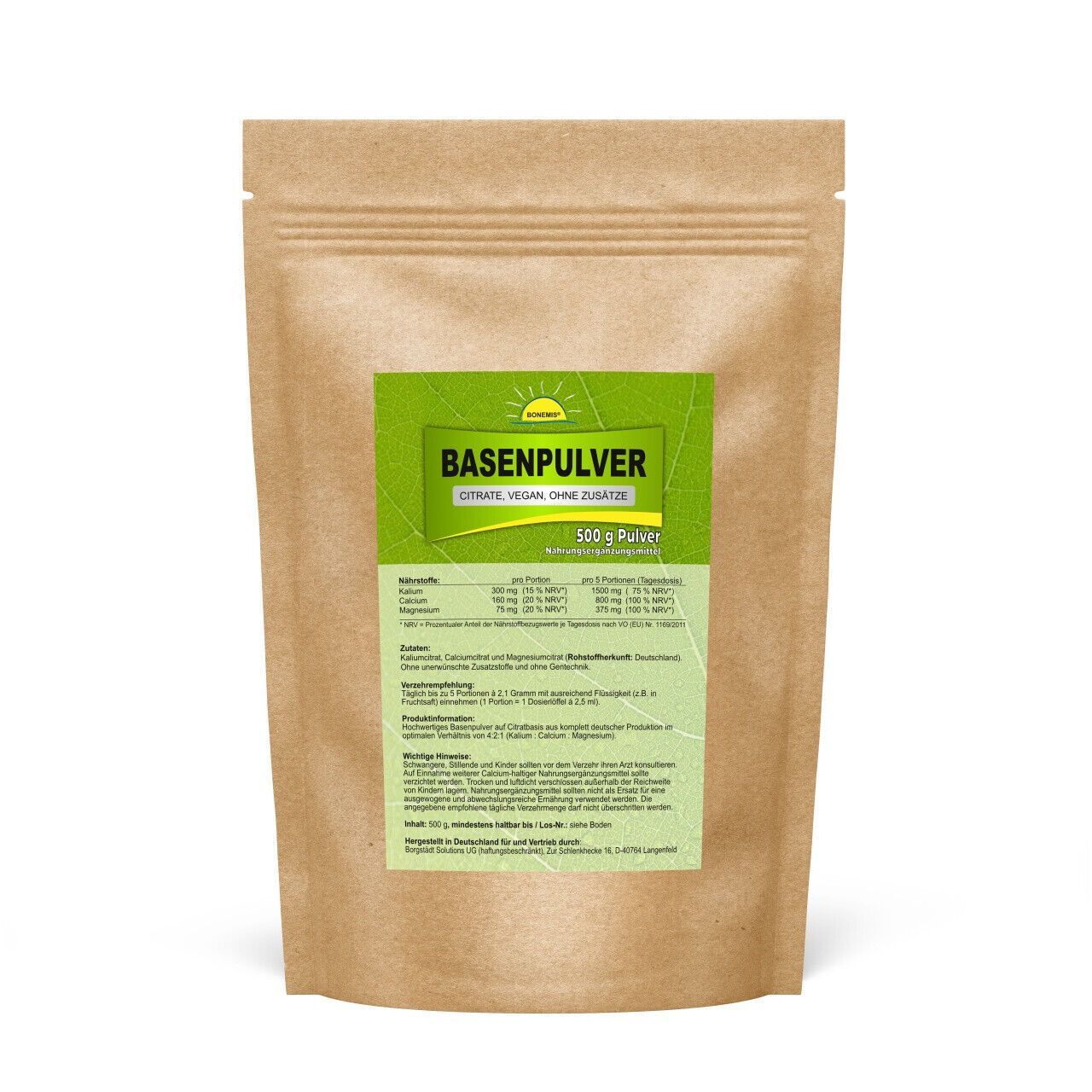 Basenpulver Premium, ohne Zusätze, vegan, 500 g Beutel, Bonemis®
