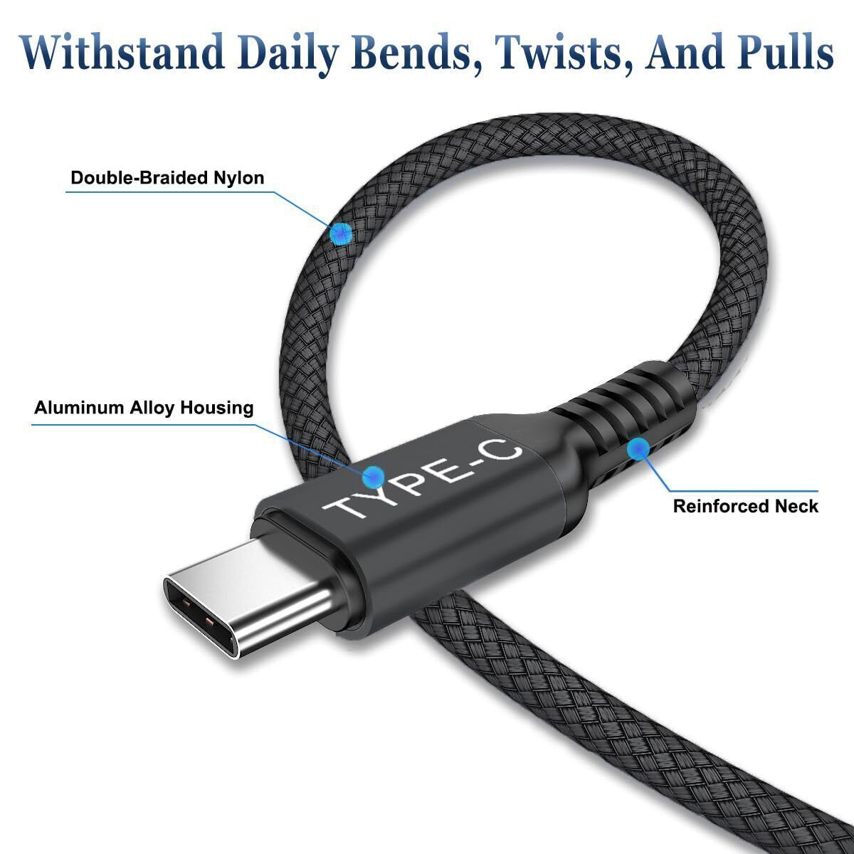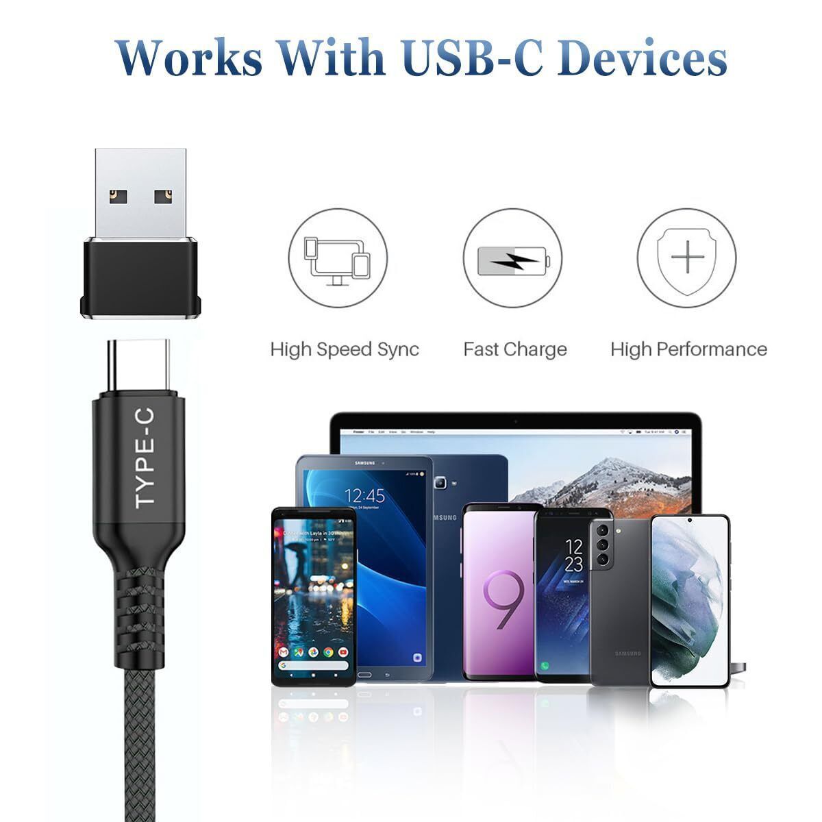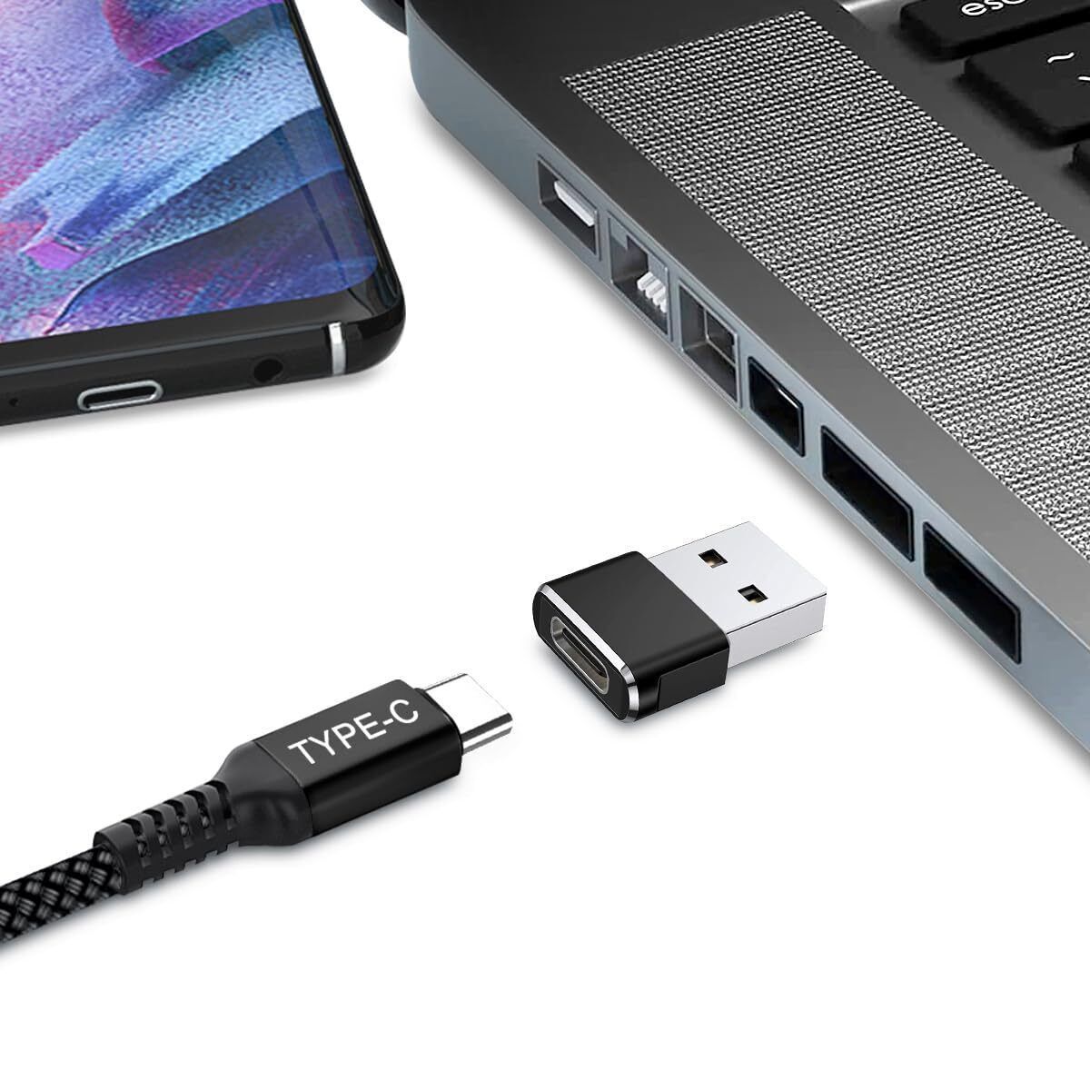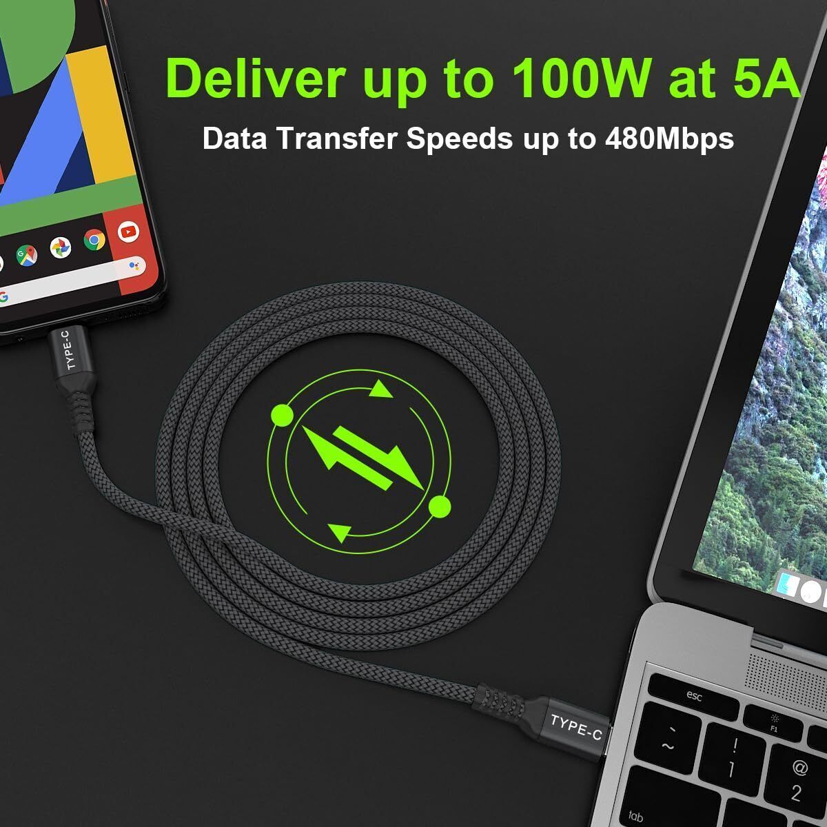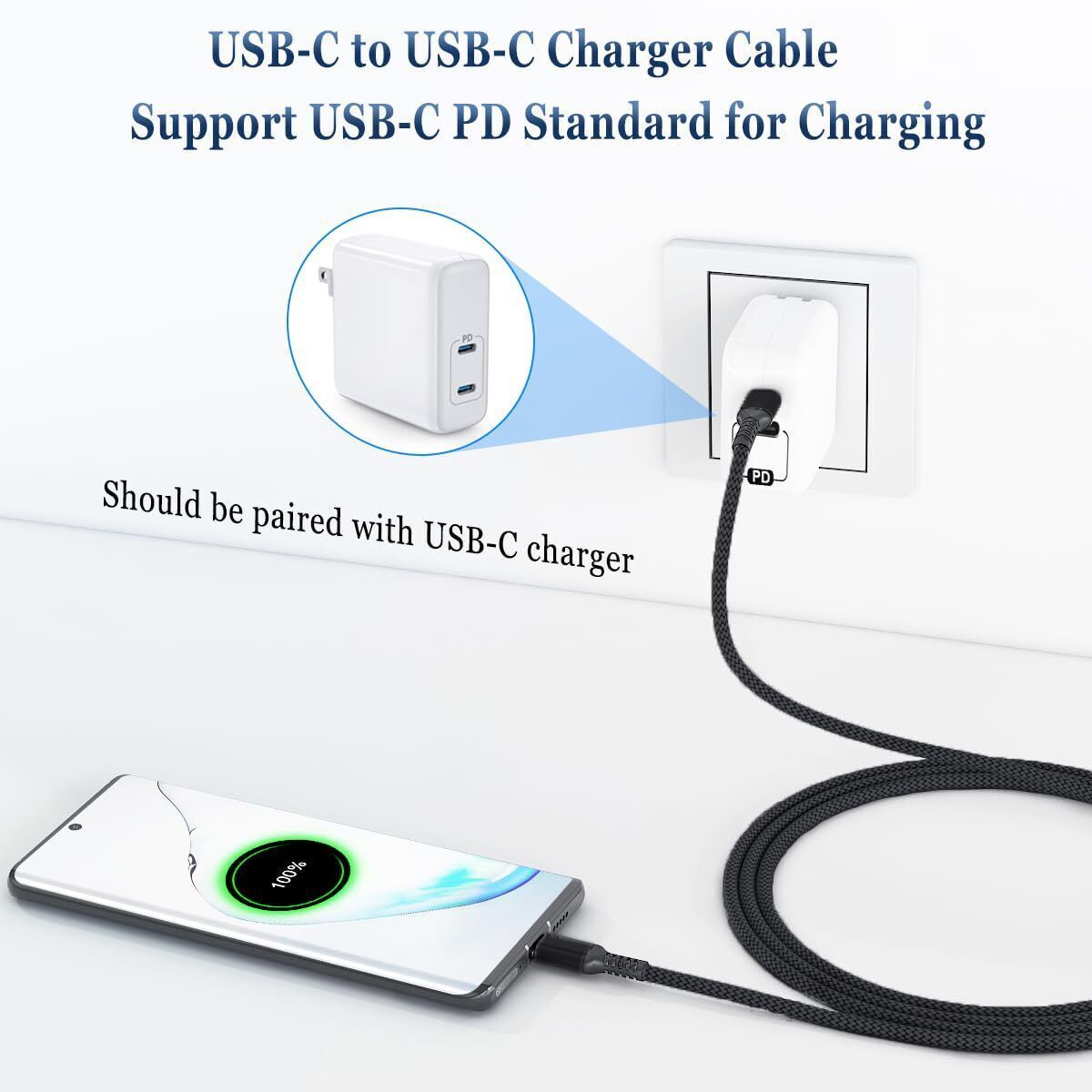 Basesailor USB C auf Typ C 100W Kabel 2M mit USB A Adapter Schnellladekabel PD