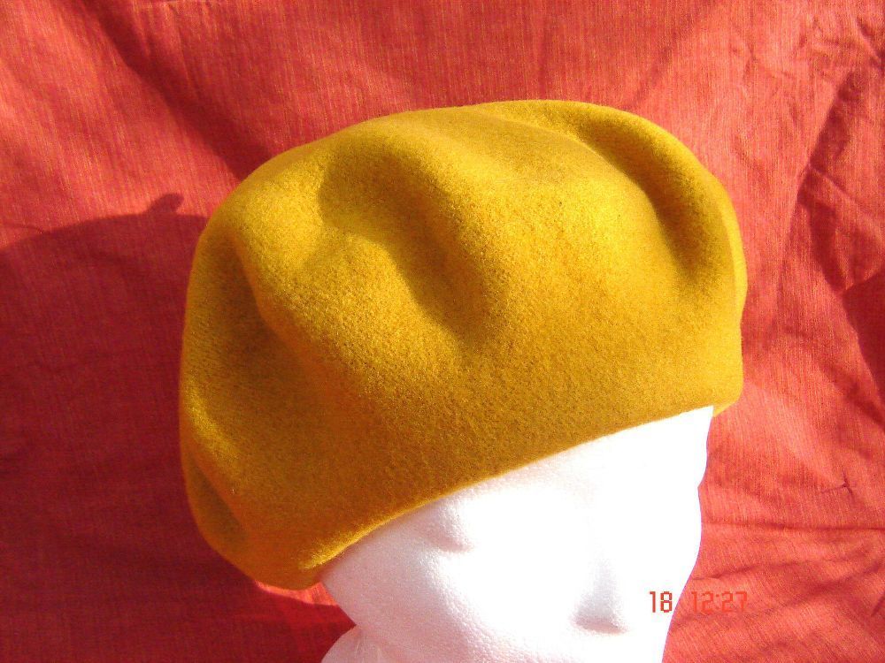 . Damenmütze Baske Baskenmütze Tellermütze in Farbe sattes gold gelb klassische Baskenmützen aus 100% Wolle , Walk , schönes weiches Material individuell zu tragen , seitlich , nach vorne , nach hinten oder auch den Innenbund nach aussen die Tellergröße ist flach hingelegt ca 27 cm die Baskenmütze p