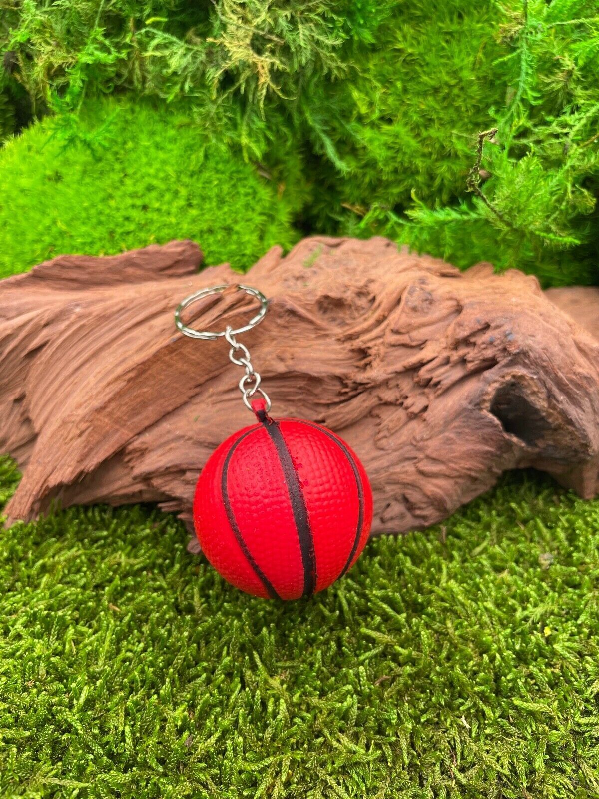 Basketball 3D Rot Schlüsselanhänger aus Metall Glücksbringer silber