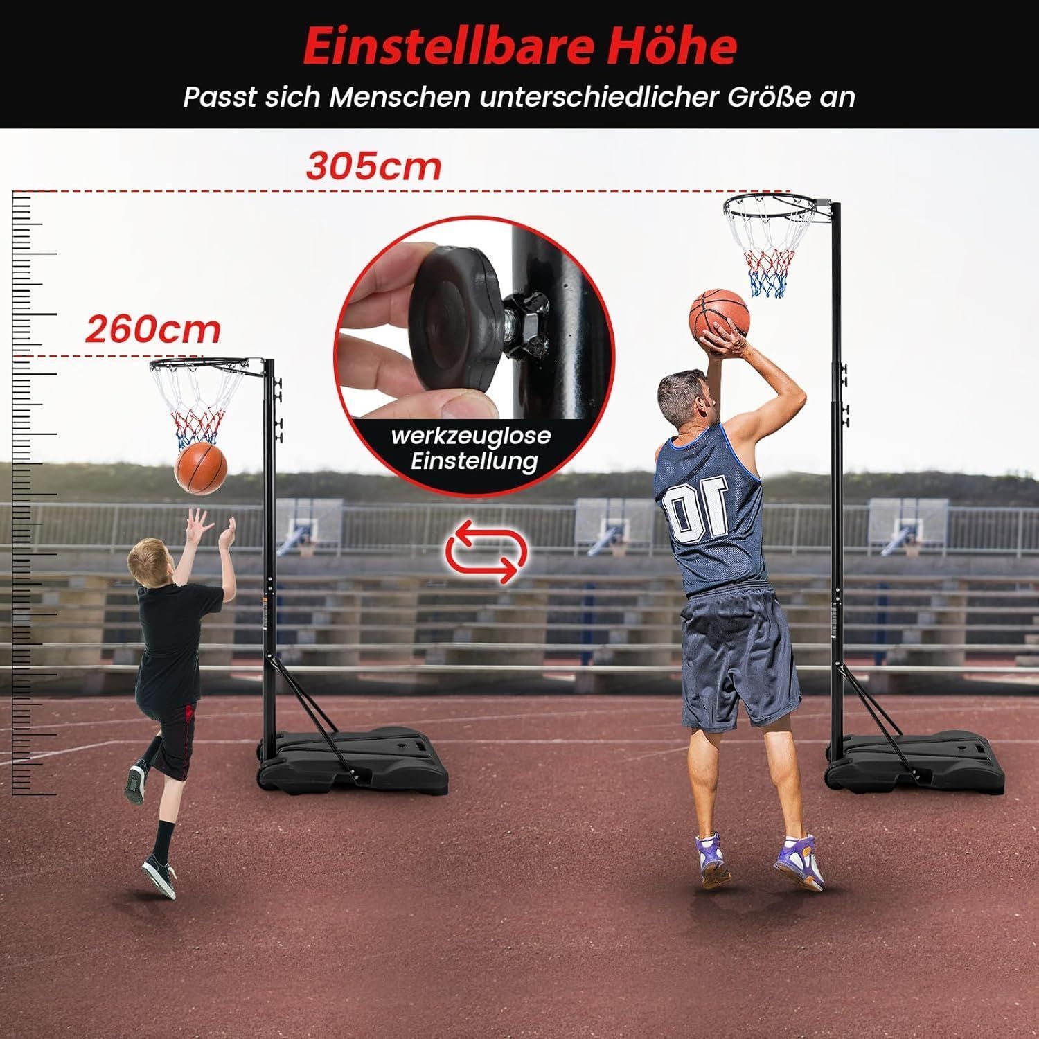 Basketballkorb Outdoor, tragbarer Basketballständer 260-305cm höhenverstelbar