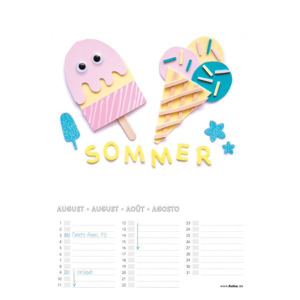 Bastelkalender/Dauerkalender DIN A4, weiß, 12 Monatsblätter