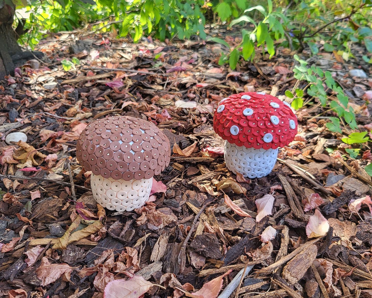 Bastelset zur Erstellung und Gestaltung von 2 Styropor-Pilzen mit Moosgummikreisen. Hierbei handelt es sich um eine ideale, selbstgemachte Dekoration oder zum Verschenken an die Liebsten.