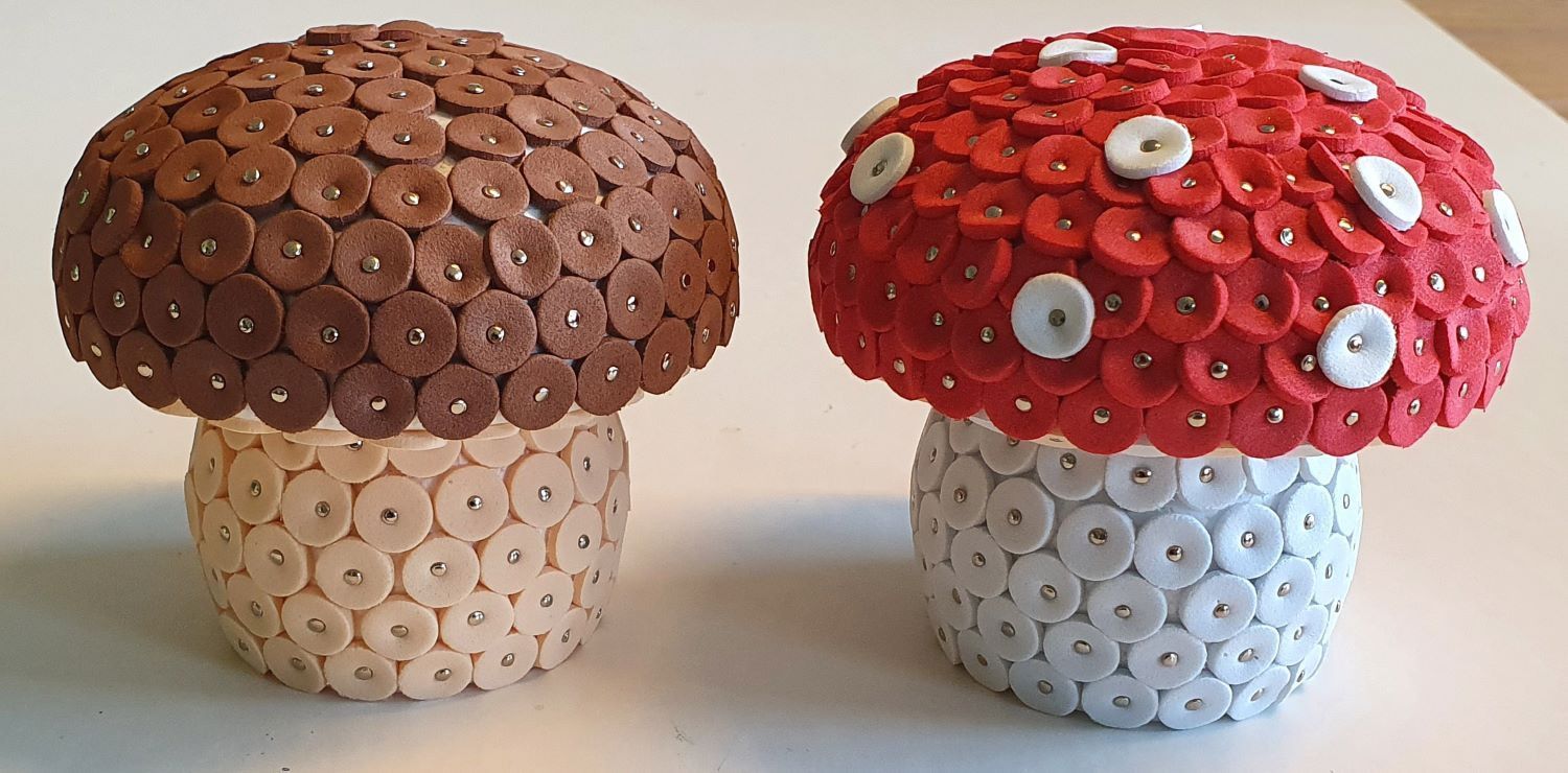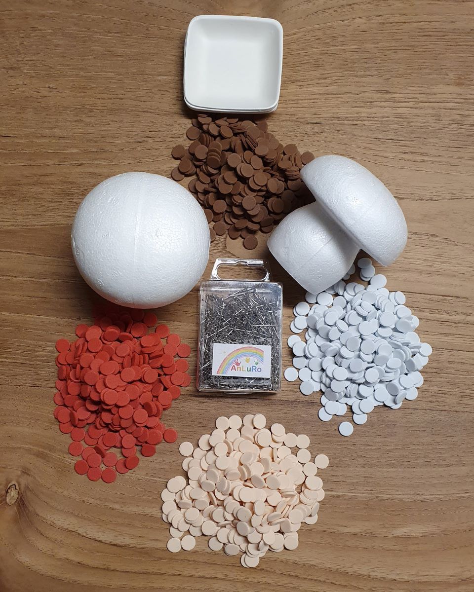 Bastelset "Alles drin" - Zwei Pilze (ca. 8cm) aus Styropor mit Moosgummikreisen