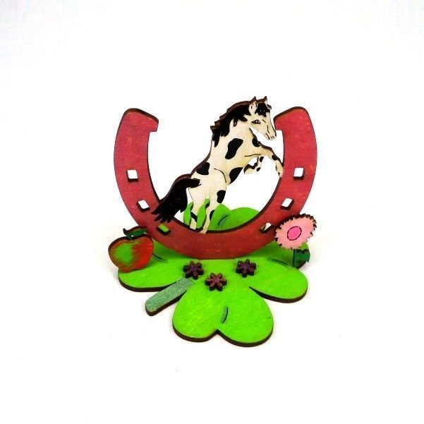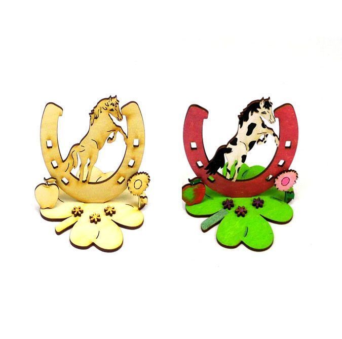 Bastelset für Kinder Pferd springen Hufeisen Holz Kindergeburtstag Verschenken