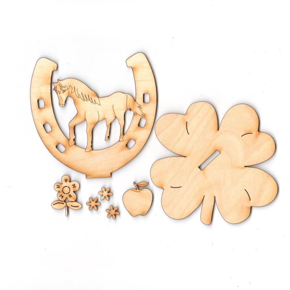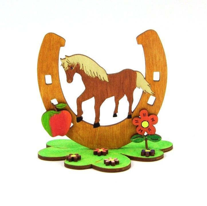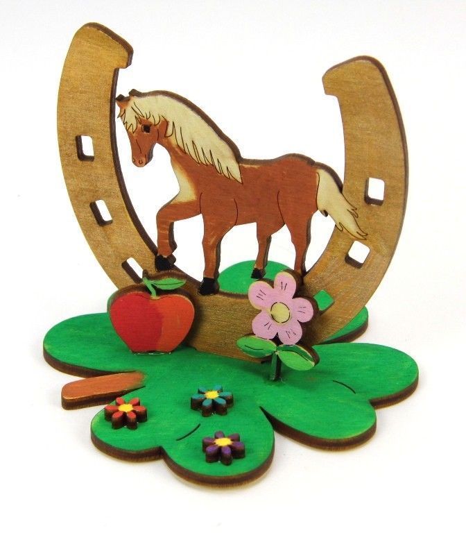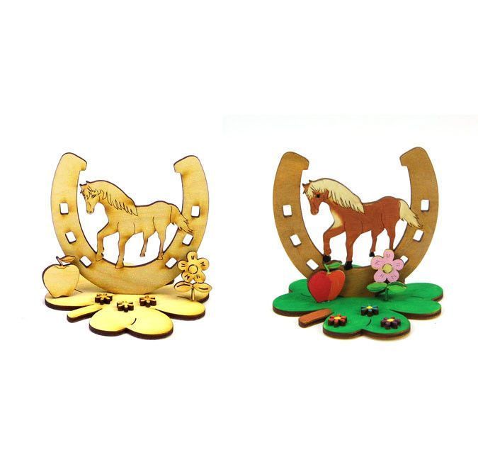 Bastelset für Kinder Pferd stehend Hufeisen Holz Kindergeburtstag Verschenken