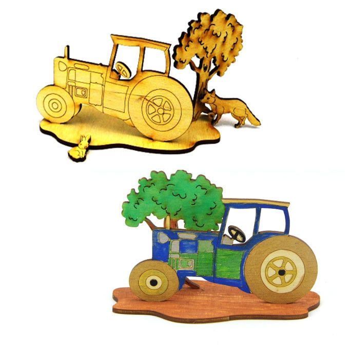 Bastelset für Kinder Traktor mit Fuchs zum Kindergeburtstag malen Verschenken
