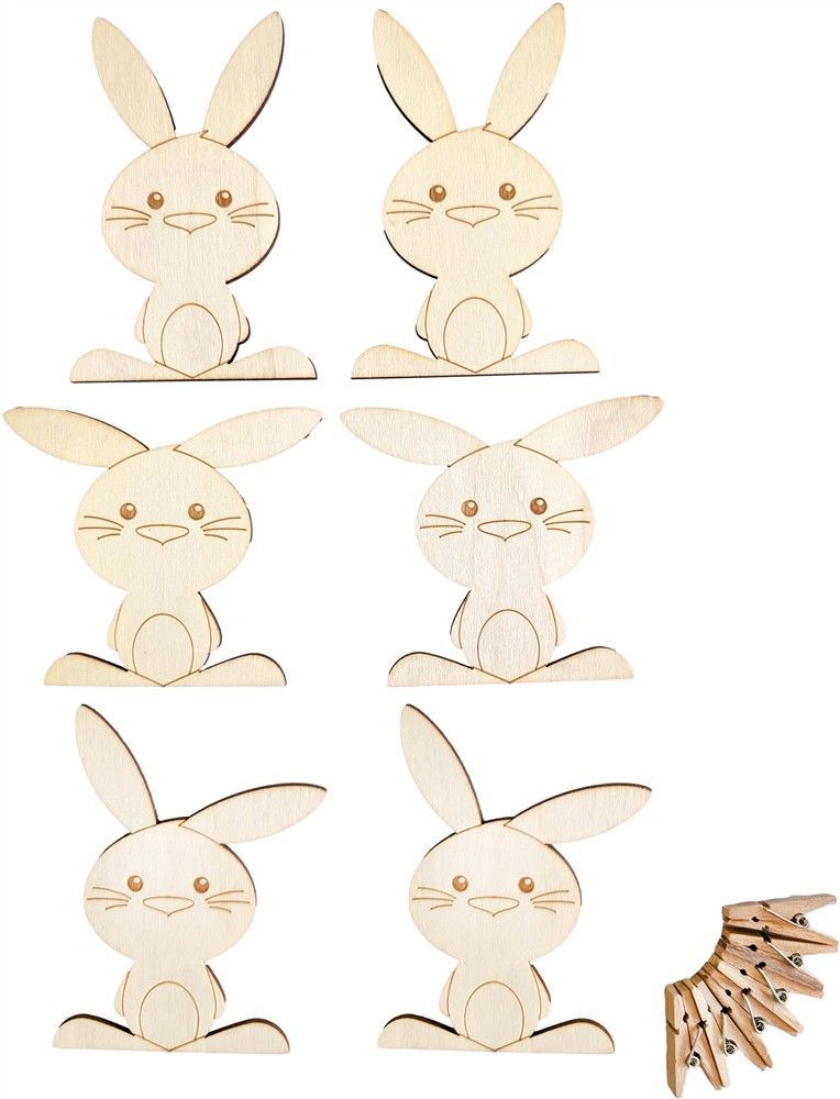 SUNNYSUE Bastelset Häschen mit Holzklammer, 6er Set