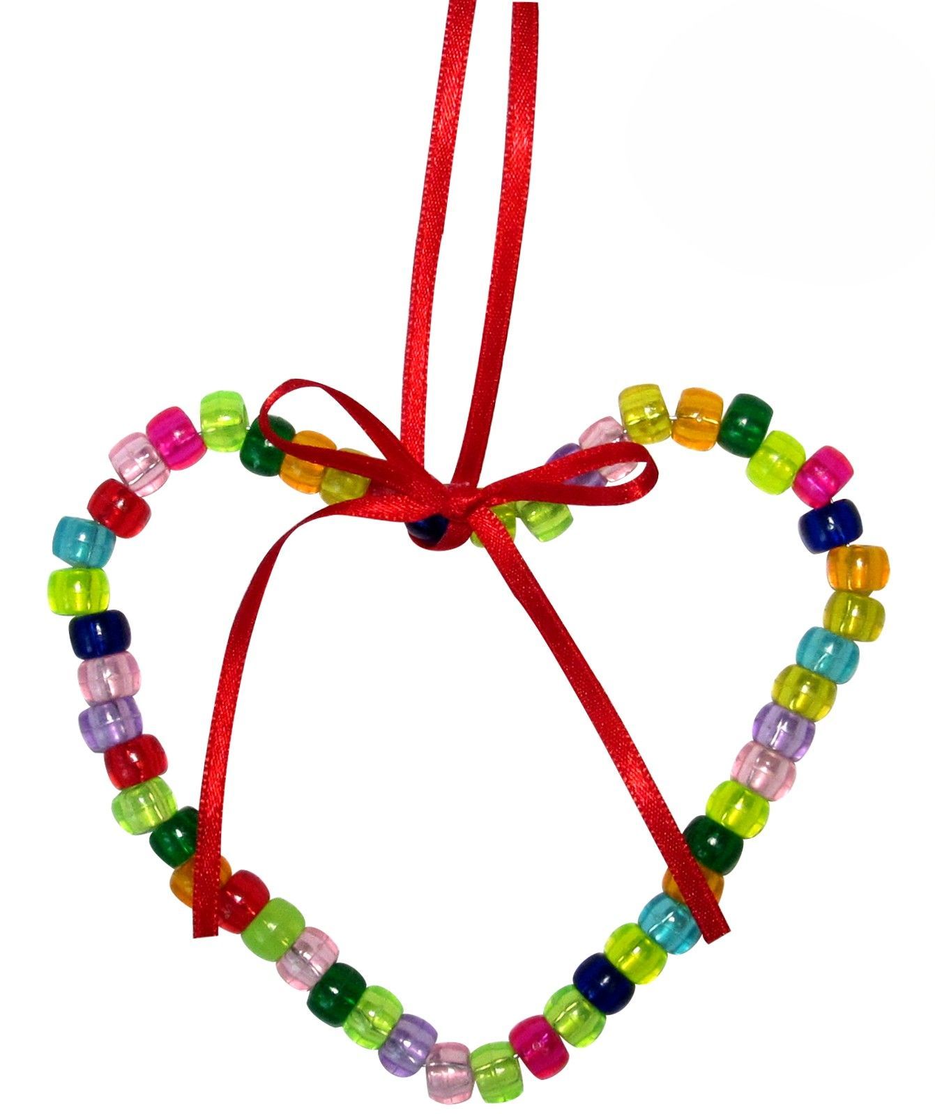 Bastelset Perlenherz: Ø ca. 10,5 cm Inhalt: • Perlen bunt transparent • Draht • Satinband rot • Anleitung