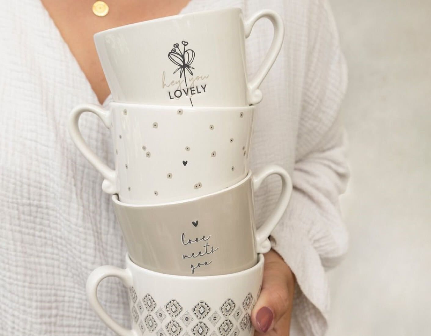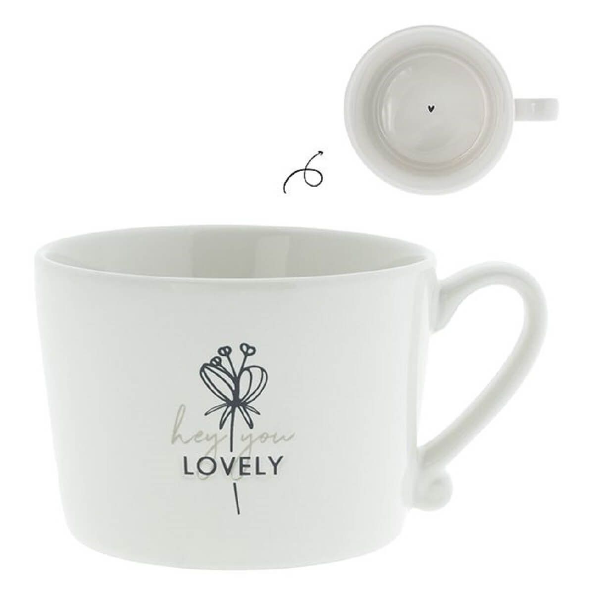 Bastion Collections Tasse HEY YOU LOVELY Herz Becher weiß schwarz Kaffee Blume