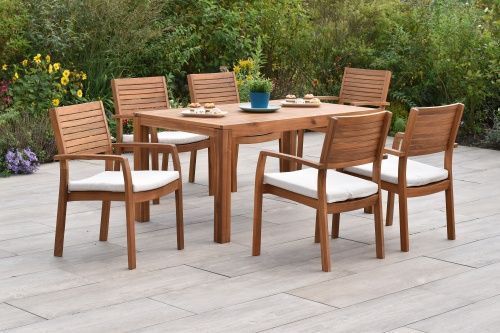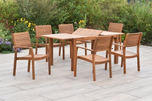 Merxx Batavia Gartenmöbel Set 13tlg., 6 Stapelsessel, 6 Sitzkissen Ausziehtisch 150 (200)