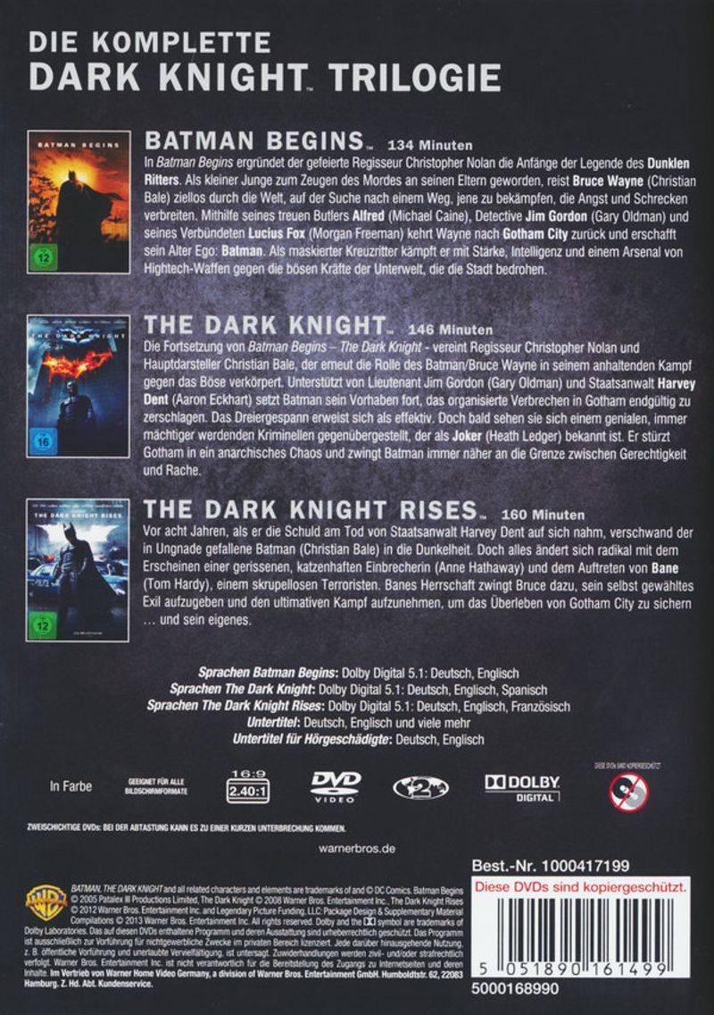 Batman: Dark Knight Trilogie (DVD) 3DVD Min: 438/DD/WS - WARN