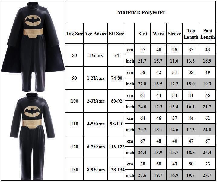 Batman Jumpsuit mit Umhang Cape Kostum Karneval Fasching Kinder Jungen Cosplay