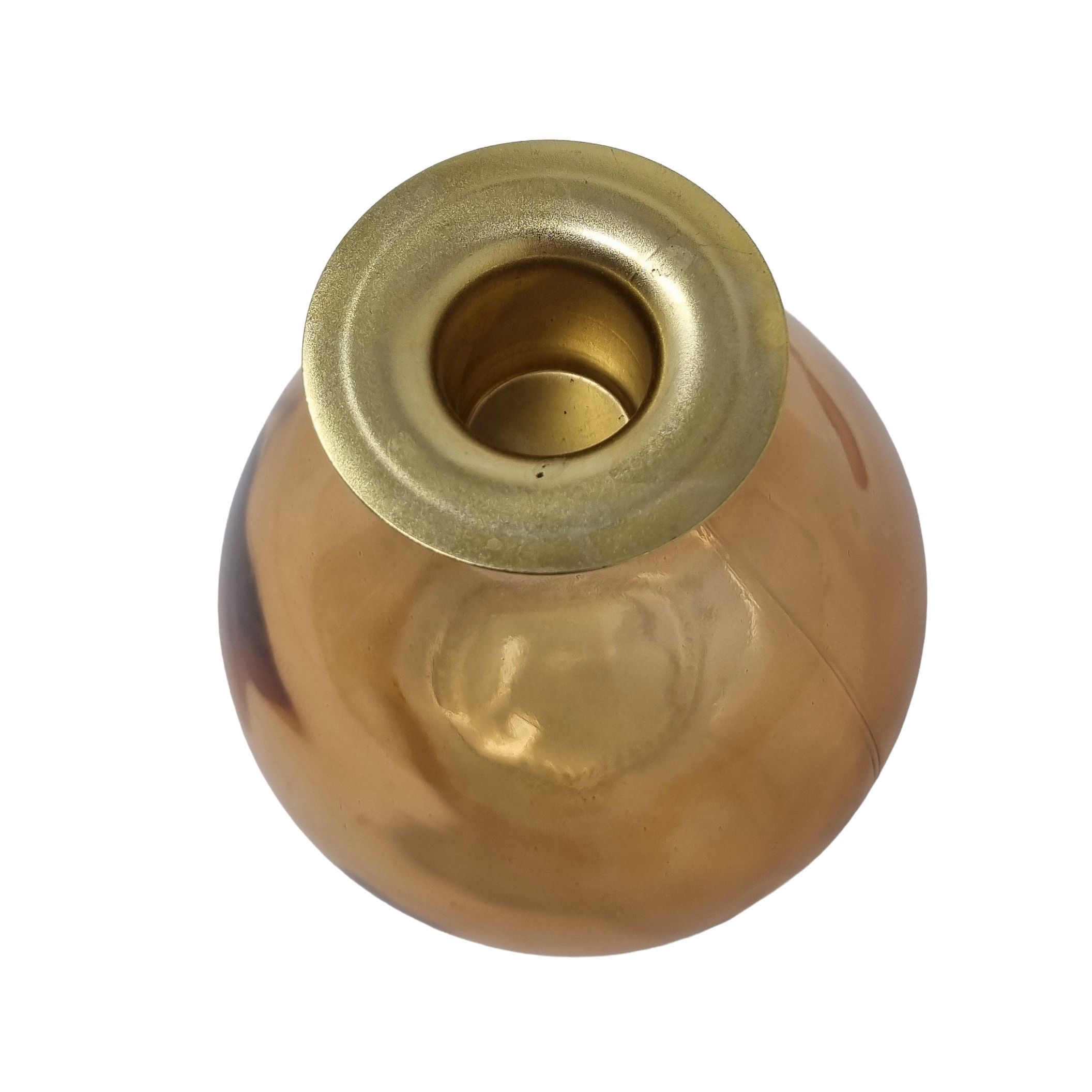 Bauchiger Kerzenhalter Retro-Look Getöntes Amber Glas Ø 10 cm Höhe 12 cm