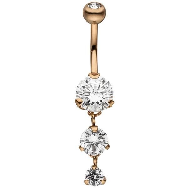• Bauchnabel Piercing Edelstahl rosé old farben 4 Zirkonia