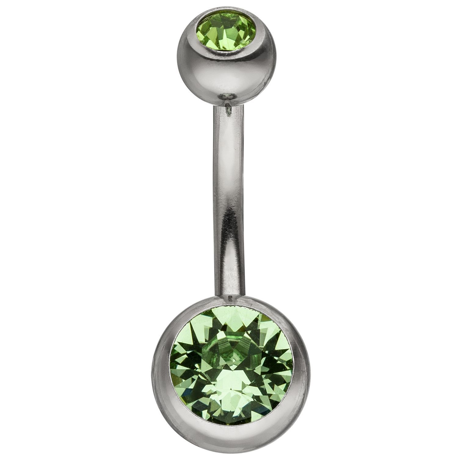 Bauchnabel Piercing Edelstahl mit Kristallsteinen grün