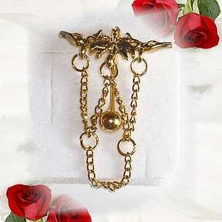 Goldfarbenes Bauchnabelpiercing Tribal mit Kettchen und drei klaren kleinen Kristallen. Gesamtlänge ca. 4,00 cm, Breite 2,60 cm, Stablänge 12 mm. Material: Chirurgenstahl L316, nickelfrei Ungetragen und NEU. Bitte beachten Sie auch meine anderen Auktionen, hier können Sie Versandkosten sparen. Auch