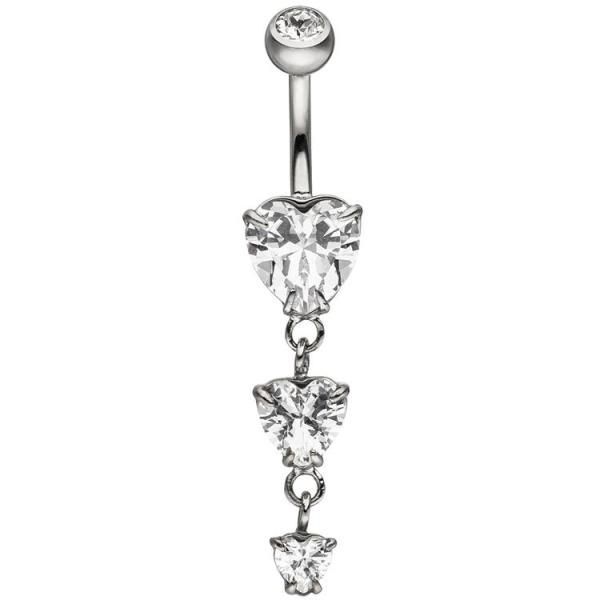 JOBO Bauchnabel Piercing Herzen Edelstahl 4 Zirkonia