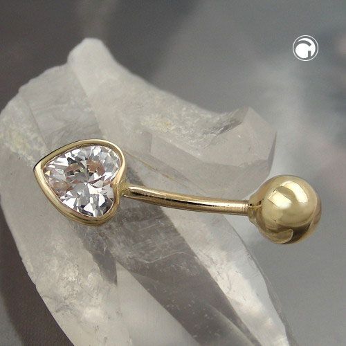 Bauchnabelpiercing Banana 20x6mm Zirkonia-Herz 14Kt GOLD