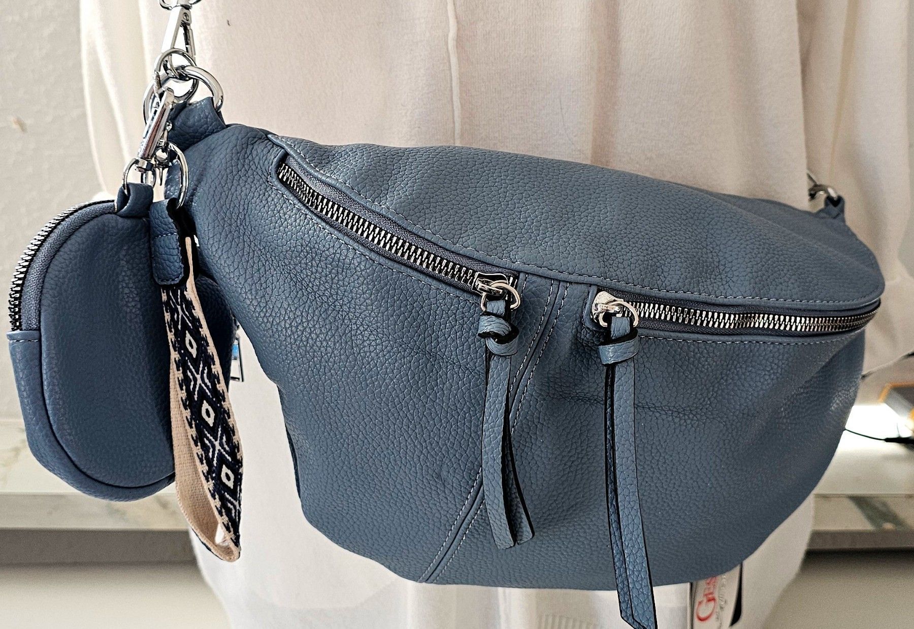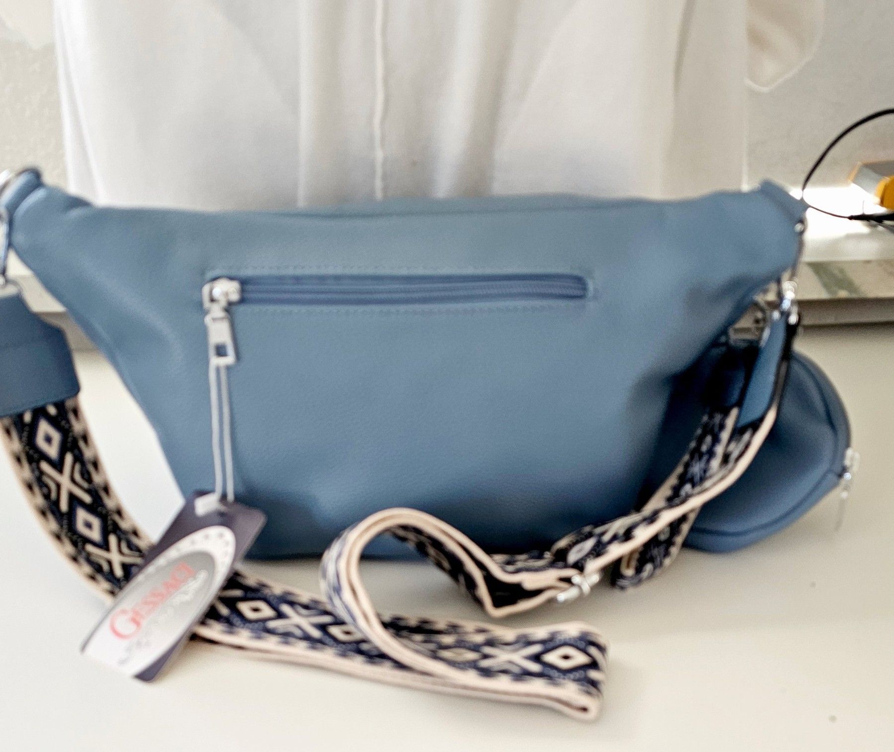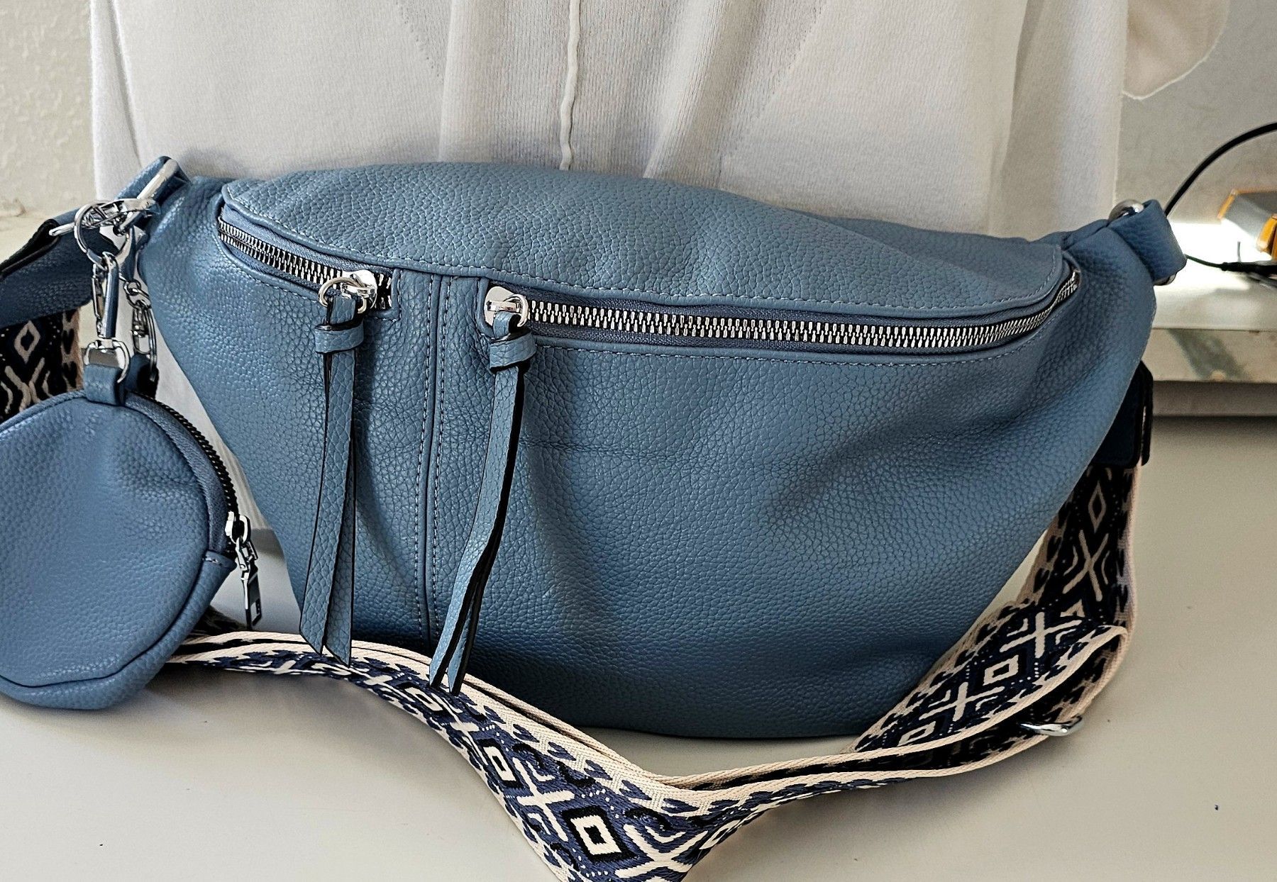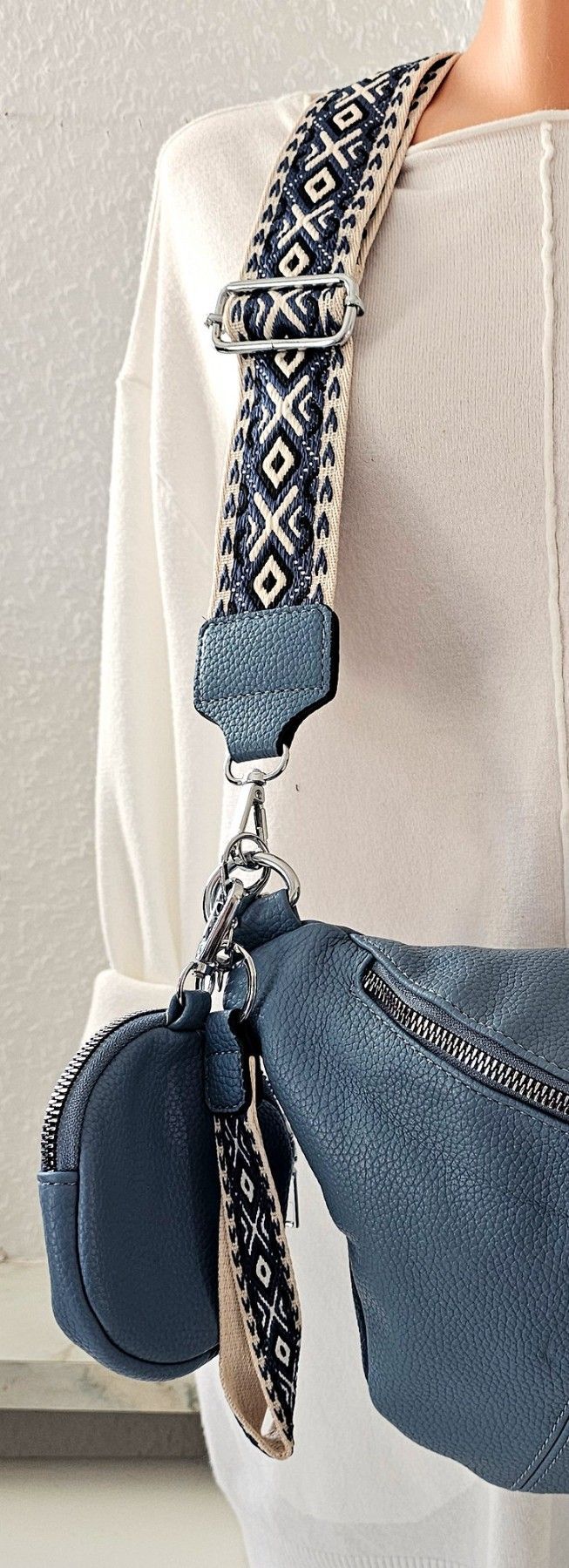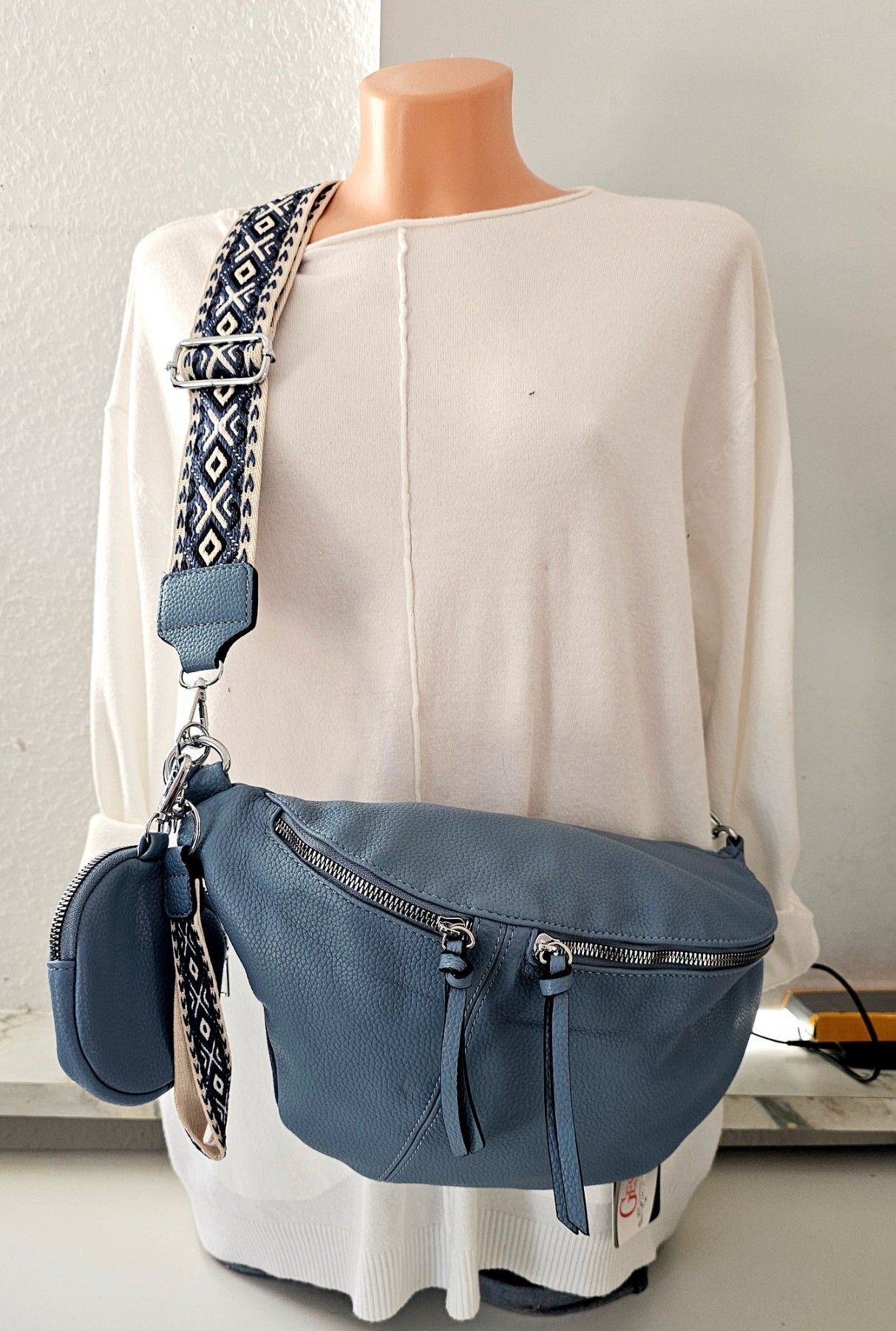 Bauchtasche Cross Body Bag Kunstleder bunter Gurt kleine extra Tasche Jeansblau